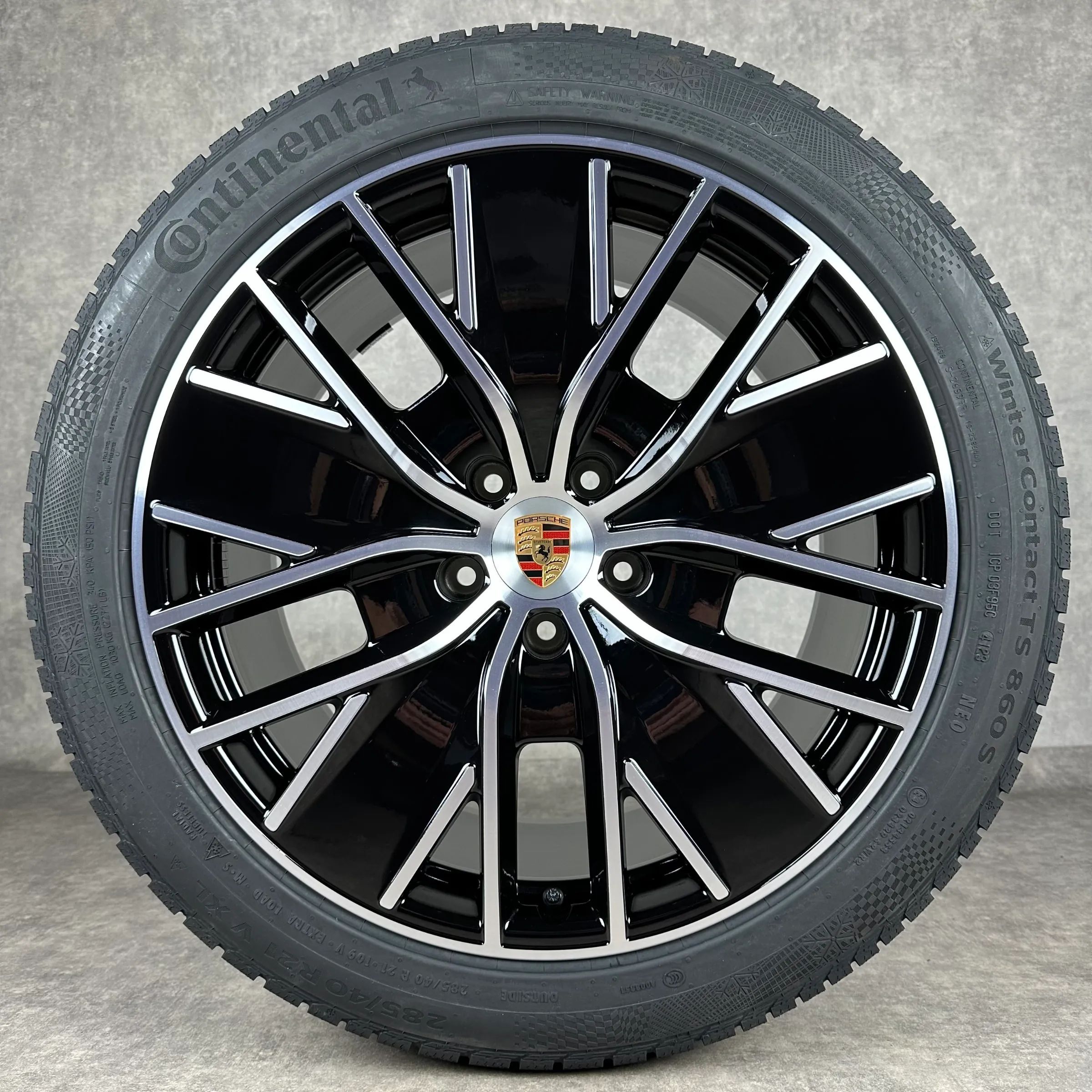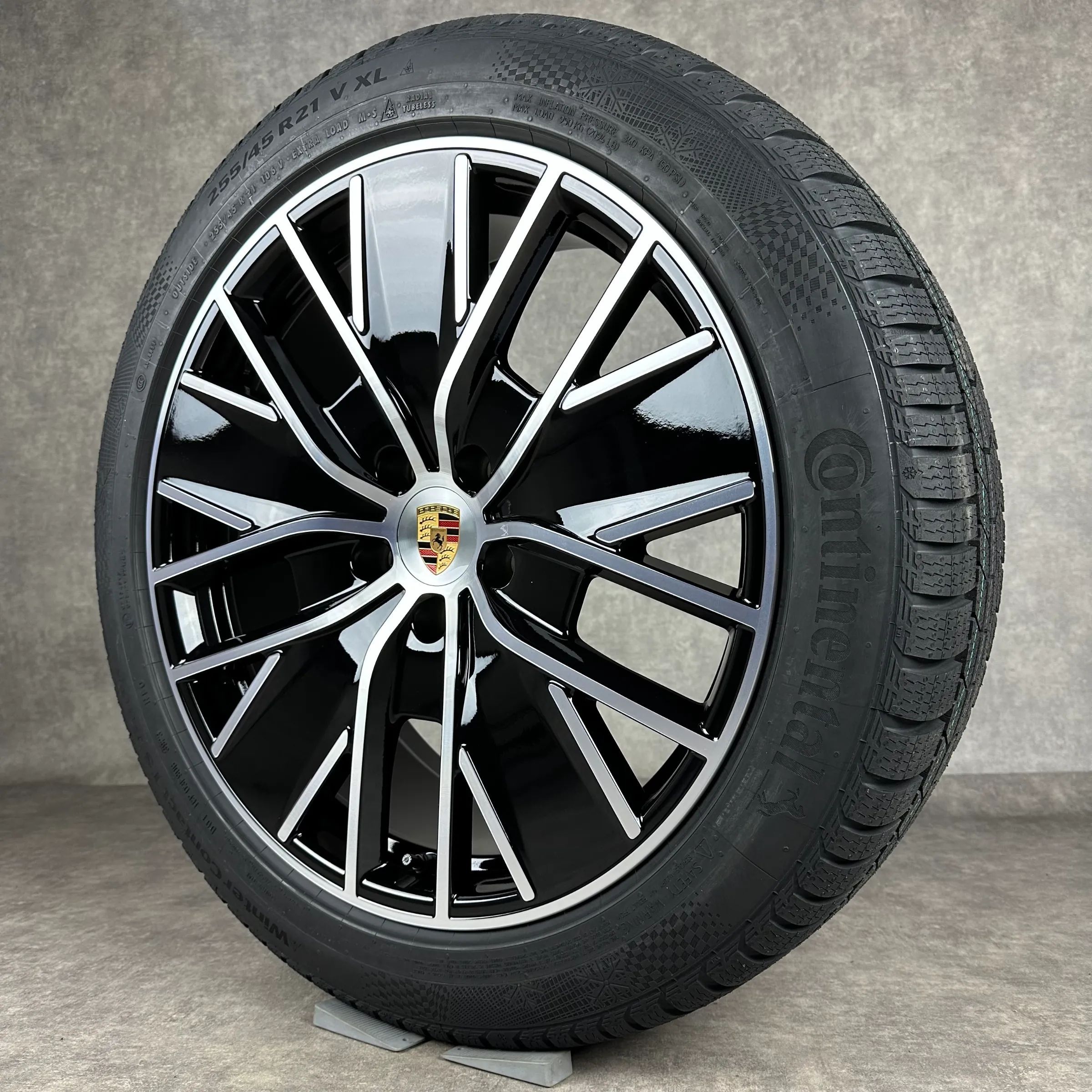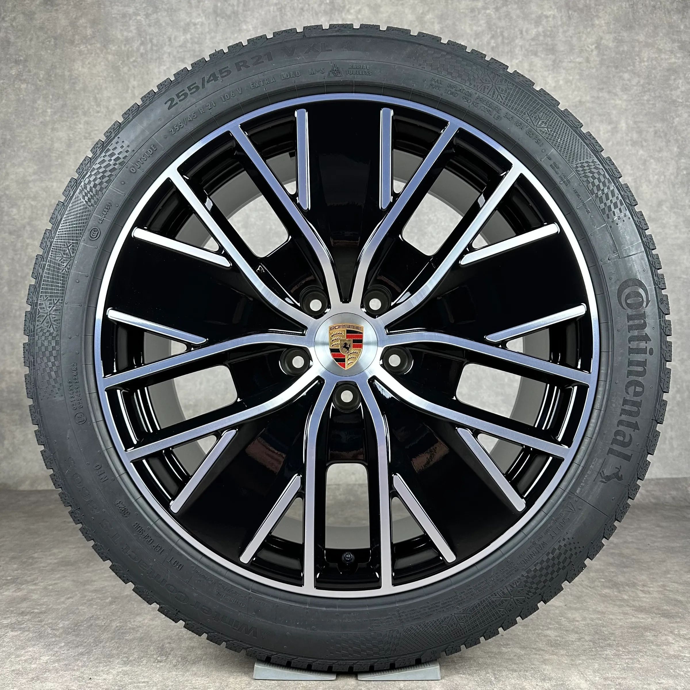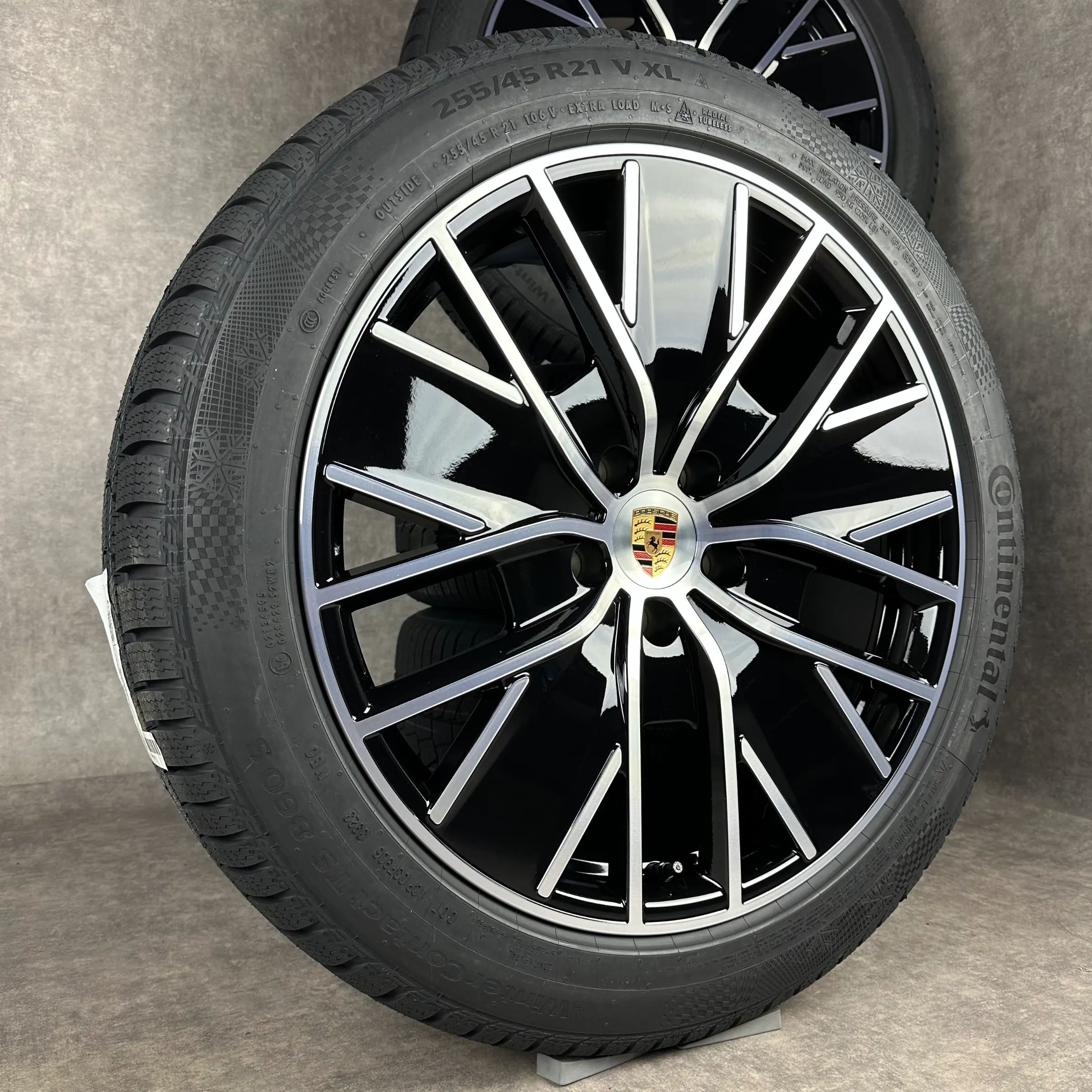 4x Original PORSCHE Macan EV 21 Design RAD Felgen Winterkompletträder schwarz hochglanz inkl. glanzdrehbereichen Original Lack VA Dimension: 8,5Jx21 ET27 Teilenummer: 95C601025BB 255 45 R21 106V Continental WinterContact TS 860S NE0, neu HA Dimension: 10,5Jx21 ET47 Teilenummer: 95C601025BC 285 40 R2
