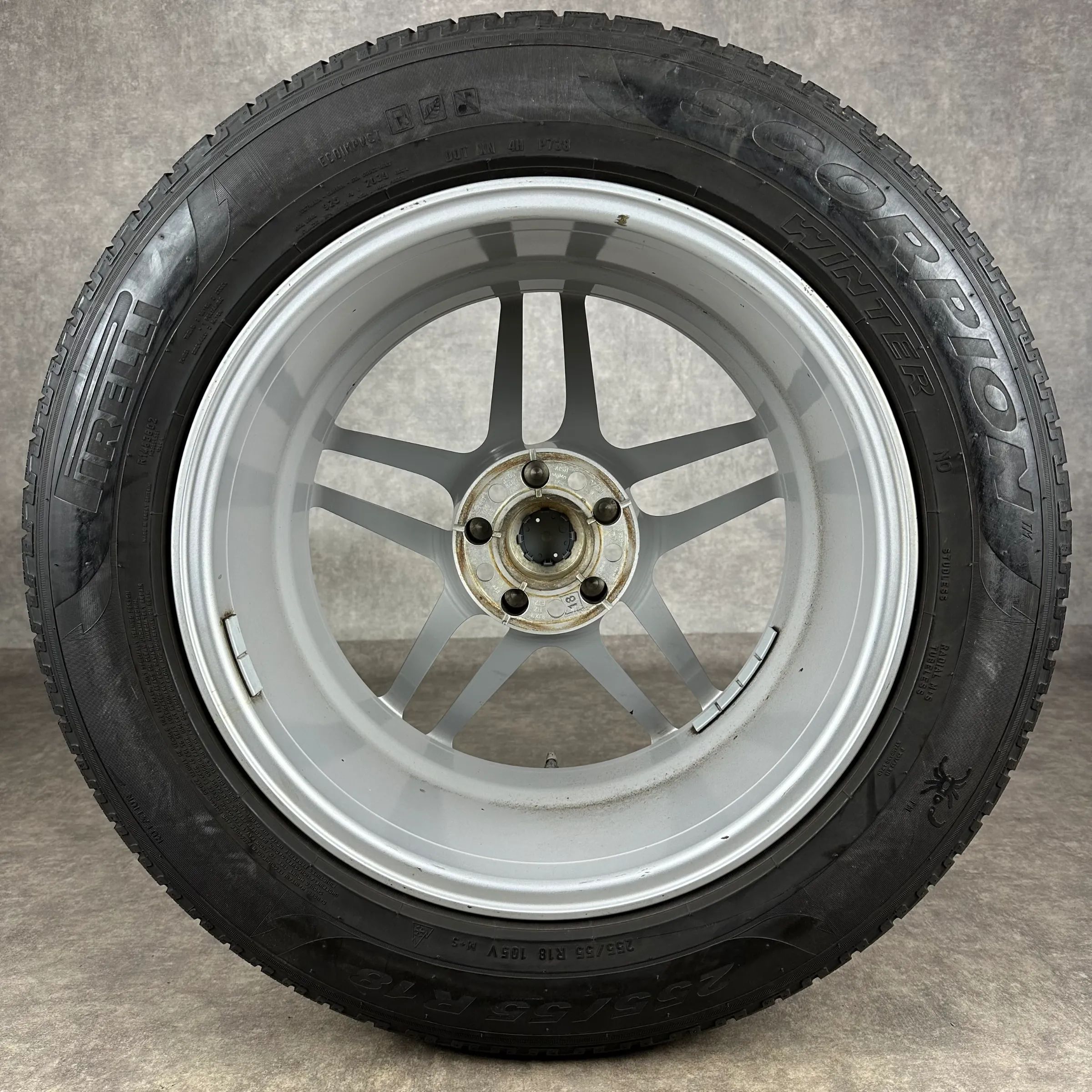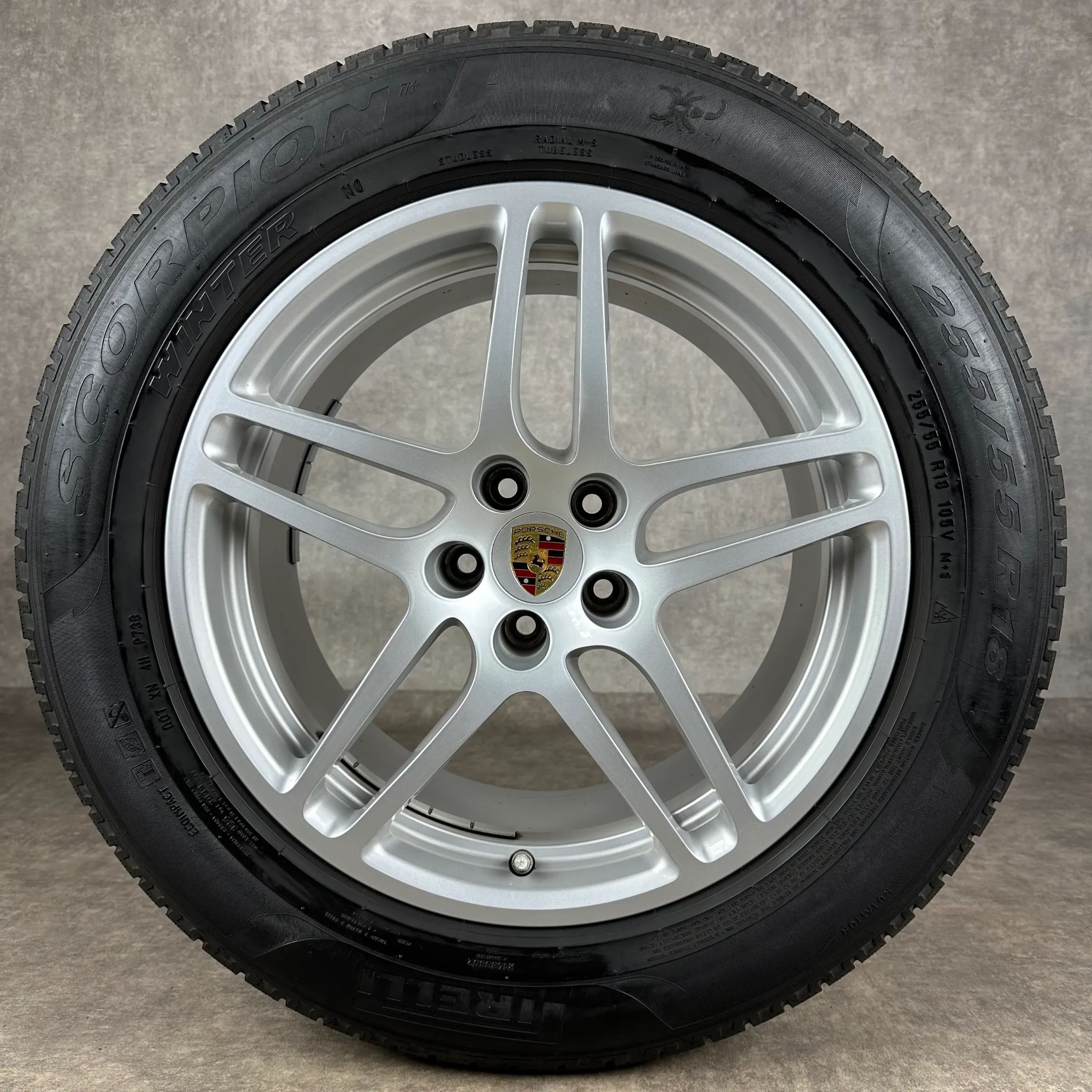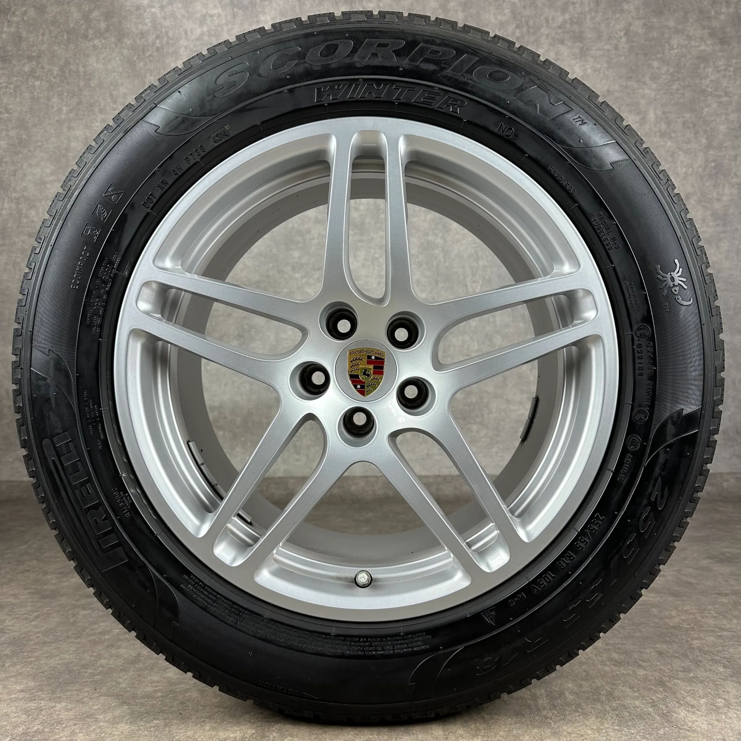 4x Original PORSCHE Macan, Macan II 18 Macan S Felgen Winterkompletträder silber Original Lack VA Dimension: 8Jx18 ET21 Teilenummer: 95B601025AR 235 60 R18 103V Pirelli Scorpion Winter N0, gebraucht, Profil 4,4mm HA Dimension: 9Jx18 ET21 Teilenummer: 95B601025AS 255 55 R18 105V Pirelli Scorpion Wint