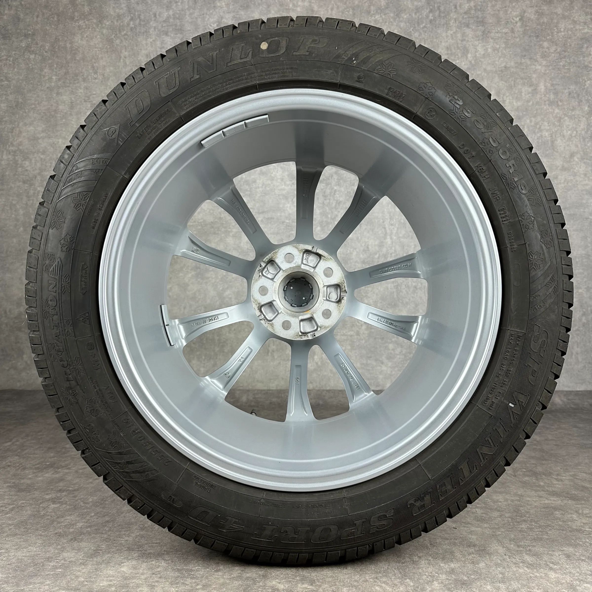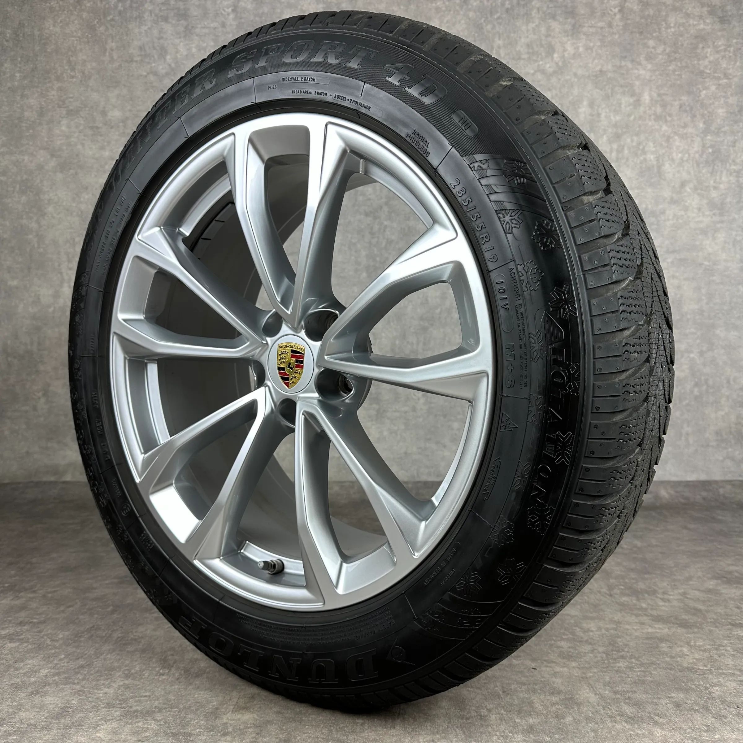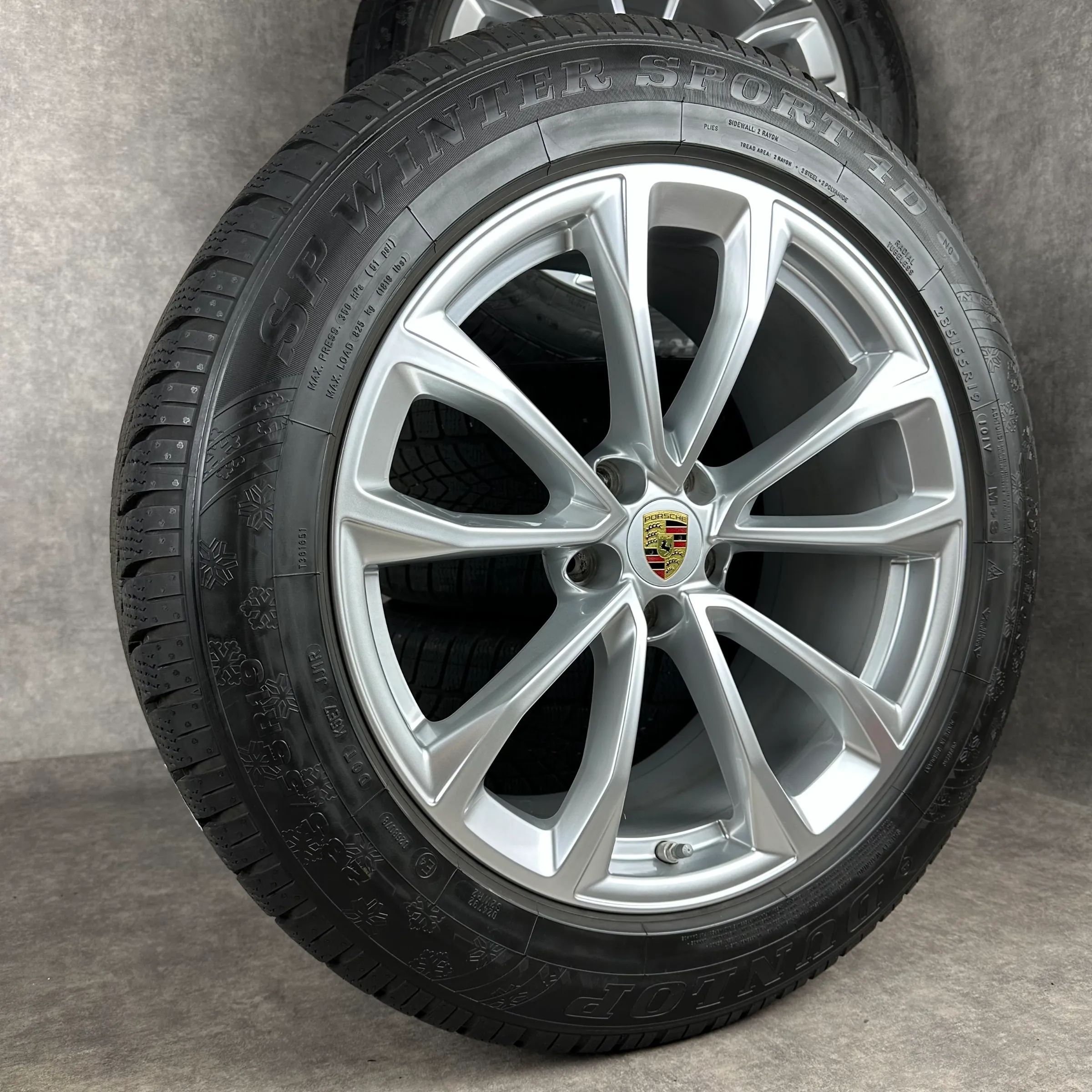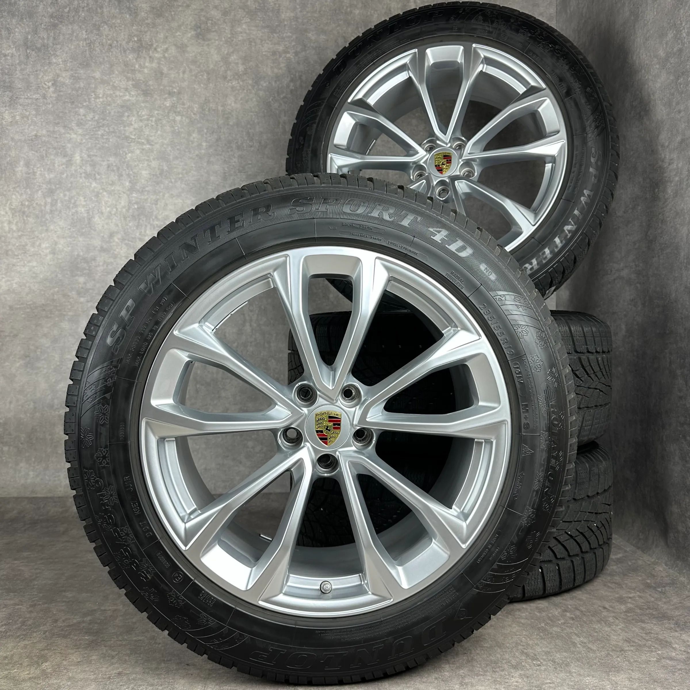4x Original PORSCHE Macan II, Macan III 19 Design Rad Felgen Winterkompletträder silber Original Lack VA Dimension: 8,5Jx19 ET21 Teilenummer: 95B601025EG 235 55 R19 101V Dunlop SP Winter Sport 4D N0, gebraucht, Profil 6,8mm HA Dimension: 9Jx19 ET21 Teilenummer: 95B601025EH 255 50 R19 103V Dunlop SP