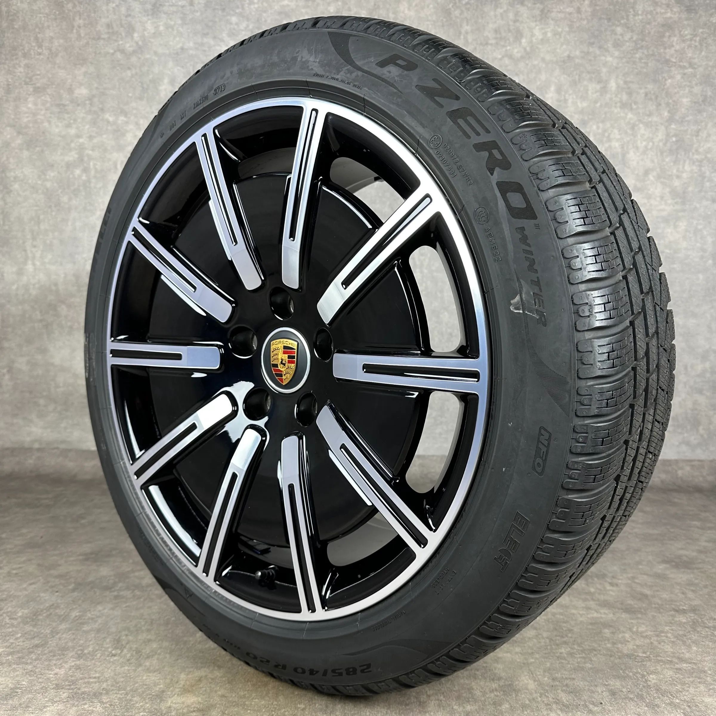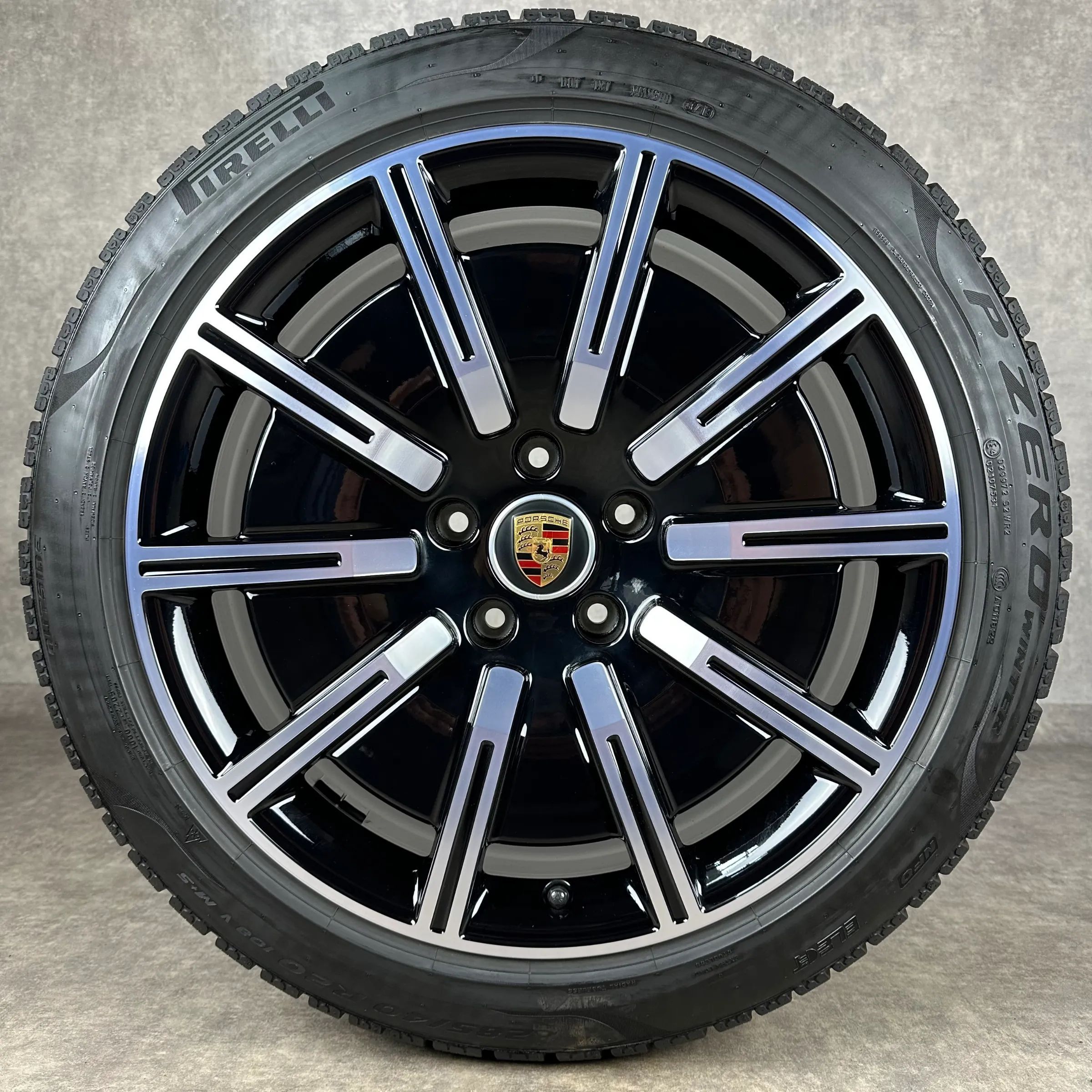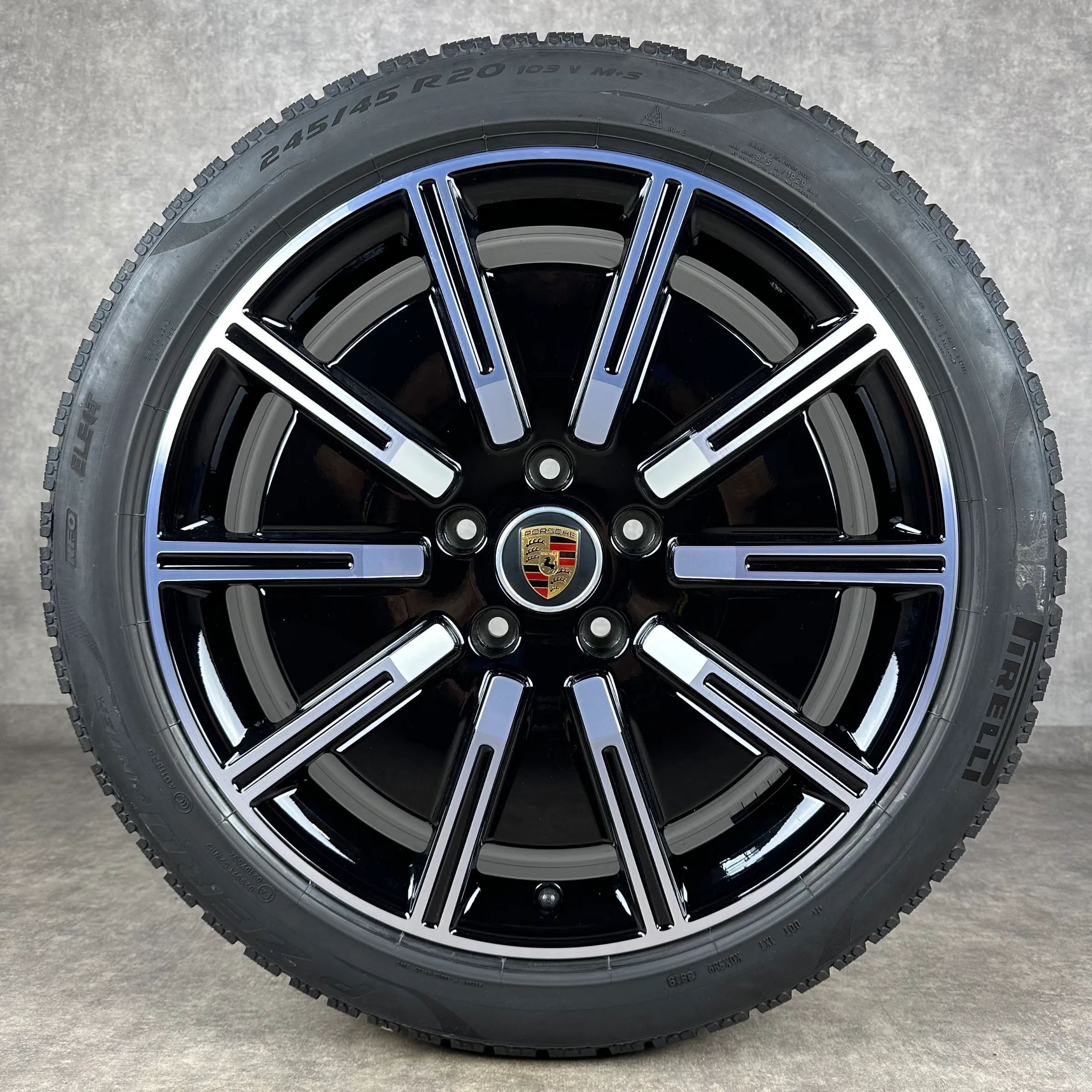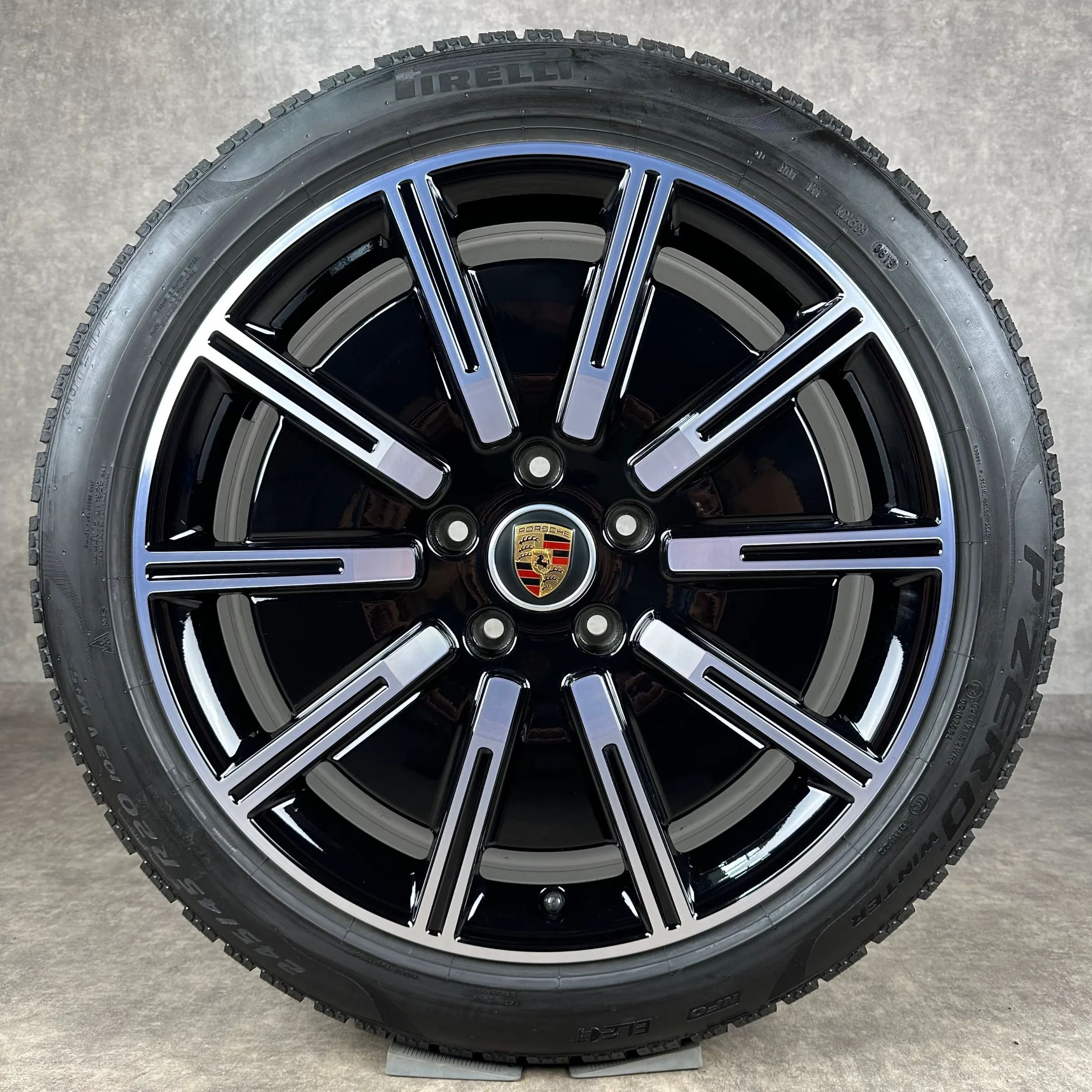 4x Original PORSCHE Taycan (J1), Taycan (J1 II) 20 Sport Aero Felgen Winterkompletträder schwarz hochglanz mit glanzgedrehter stirnfläche Original Lack VA Dimension: 9Jx20 ET54 Teilenummer: 9J1601025E 245 45 R20 103V Pirelli PZERO Winter NF0, gebraucht, Profil 6,3mm HA Dimension: 11Jx20 ET60 Teilenu