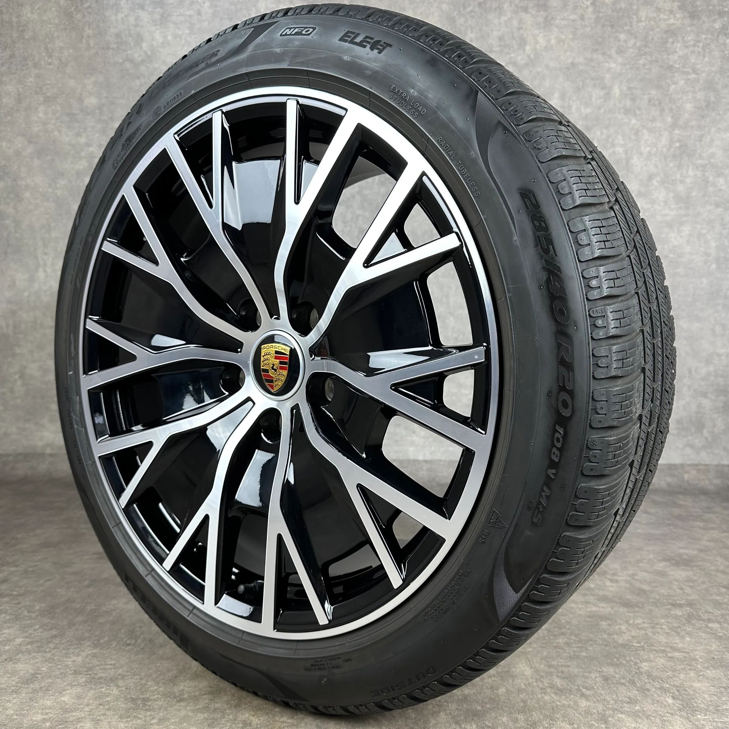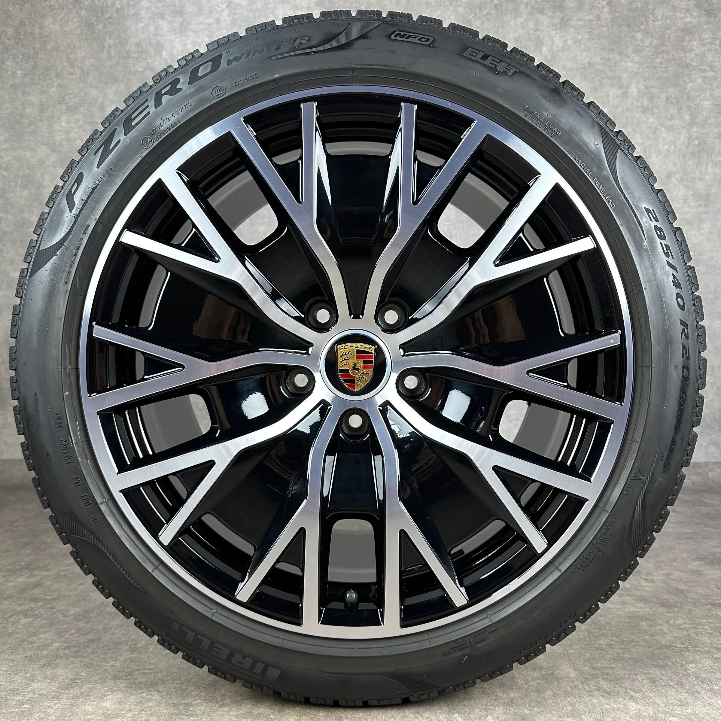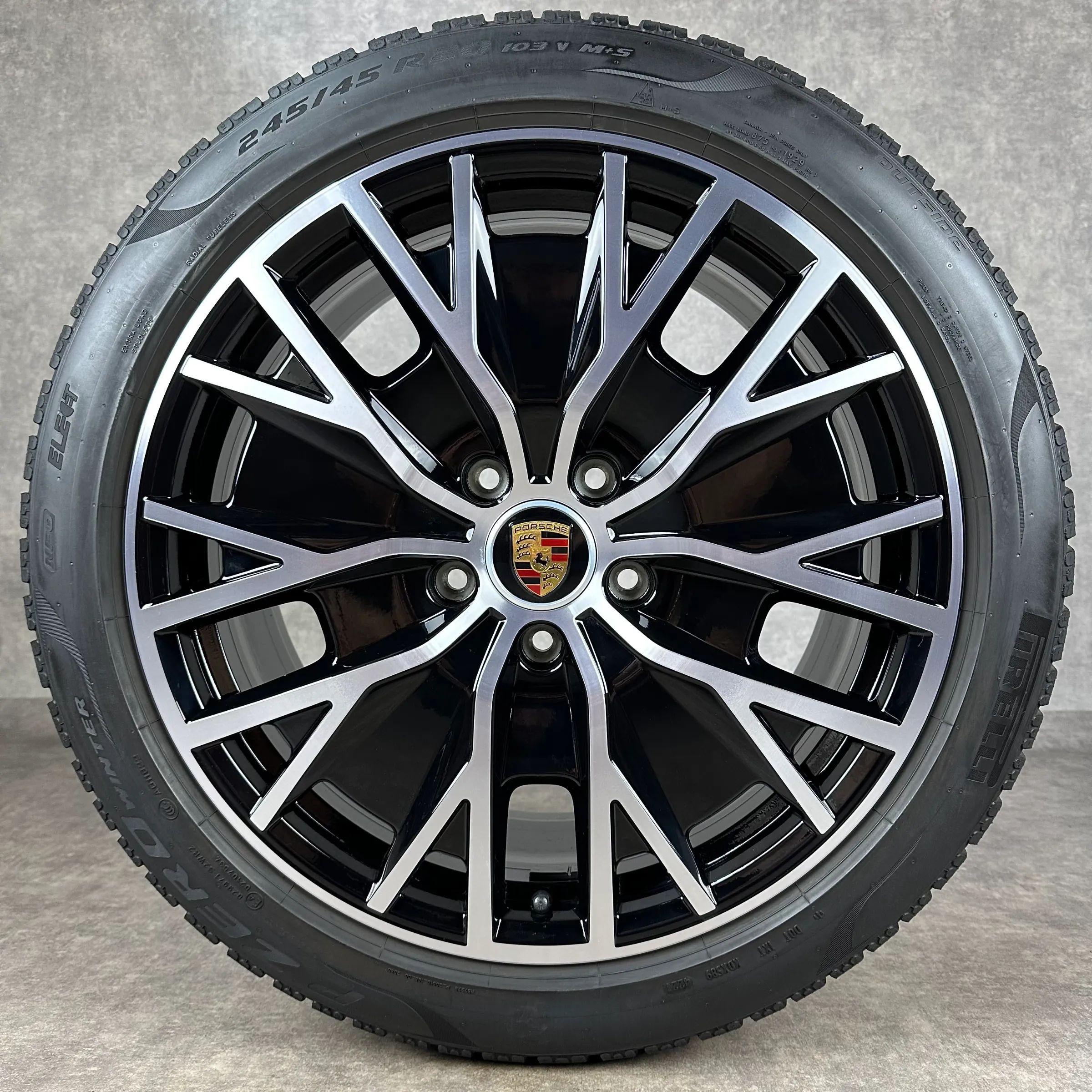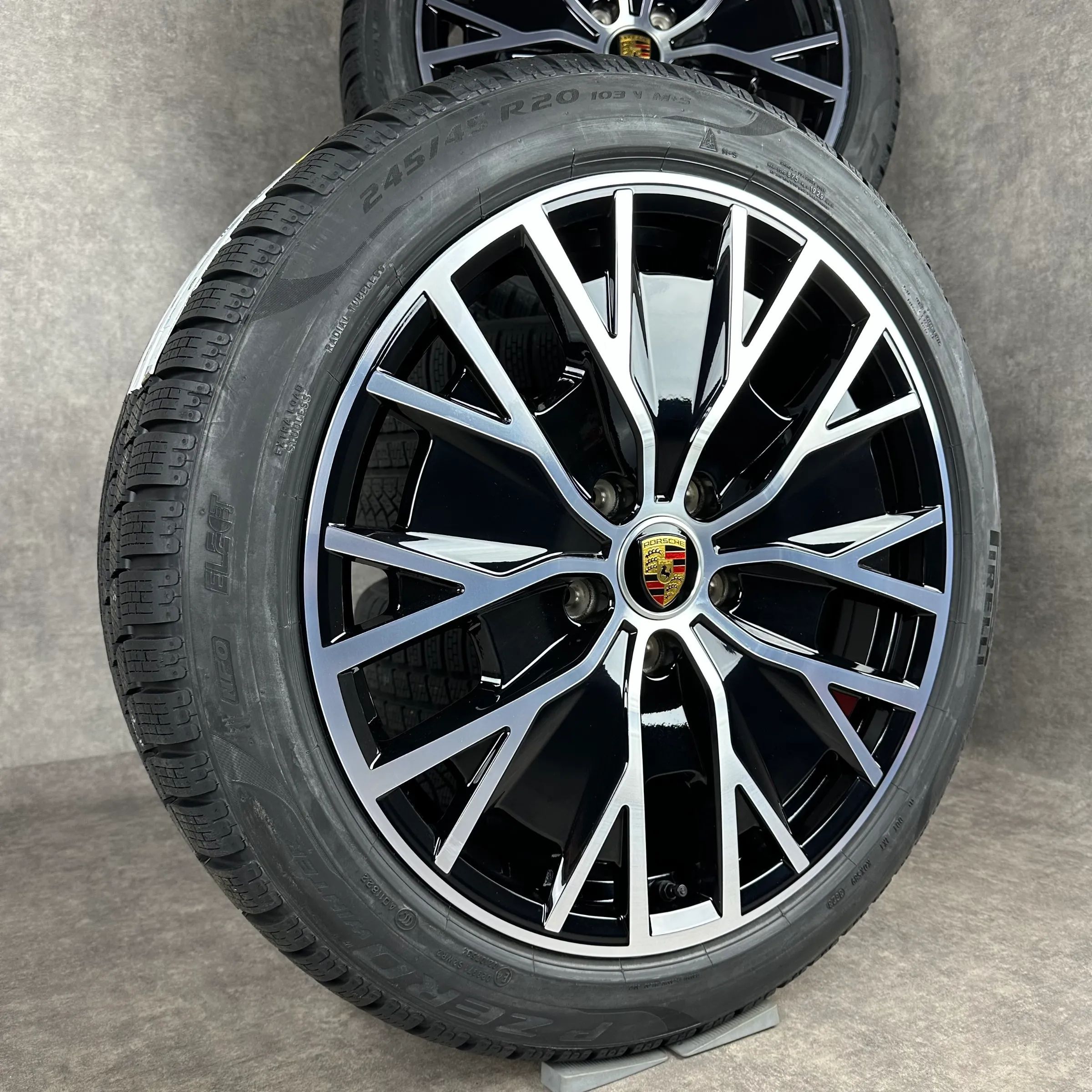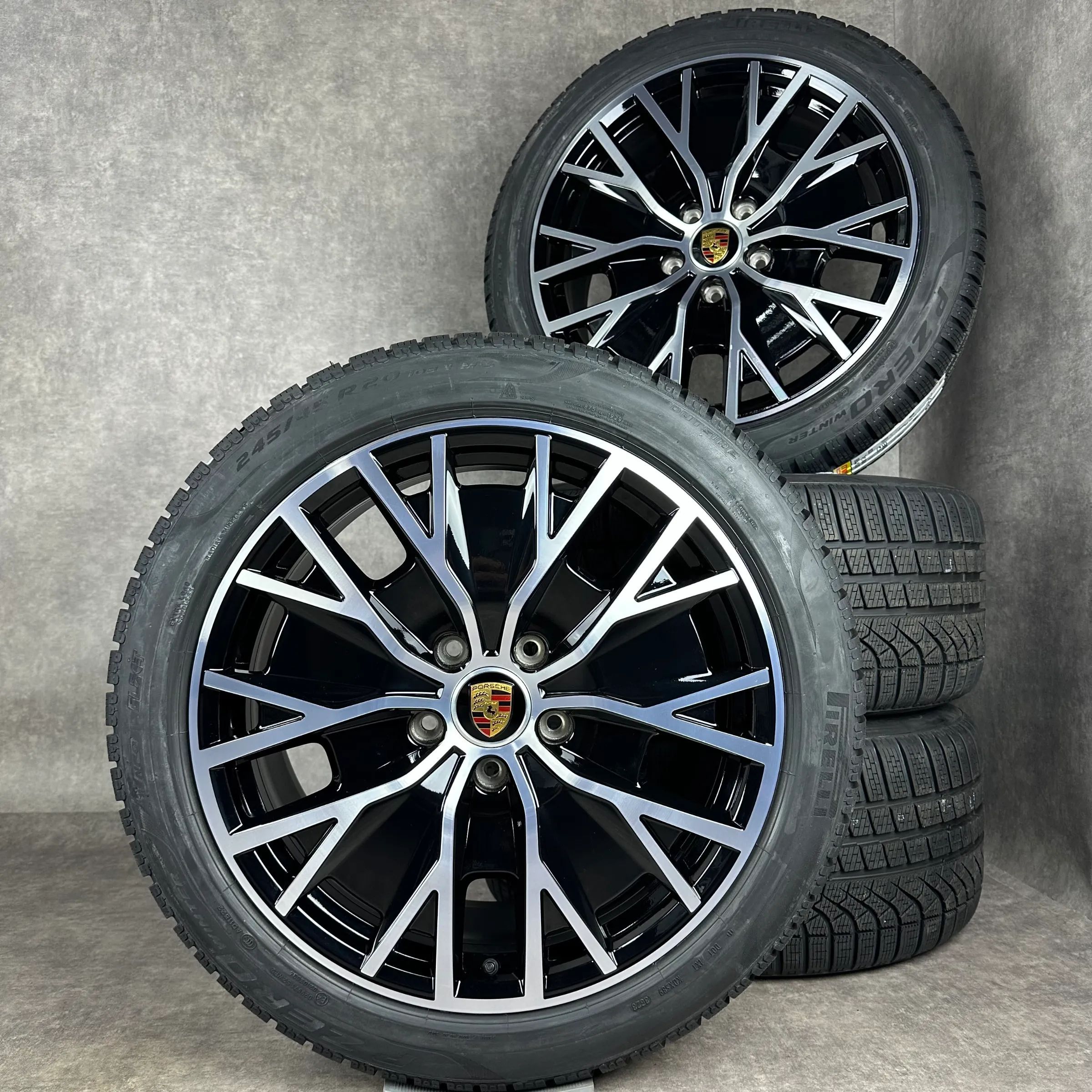 4x Original PORSCHE Taycan (J1 II), Taycan (J1) 20 Turbo S Aero Felgen Winterkompletträder schwarz hochglanz inkl. glanzdrehbereichen Original Lack VA Dimension: 9Jx20 ET54 Teilenummer: 9J1601025AG 245 45 R20 103V Pirelli PZERO Winter NF0, gebraucht, Profil 7,1mm HA Dimension: 11Jx20 ET60 Teilenumme