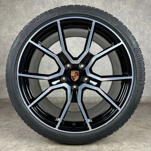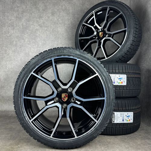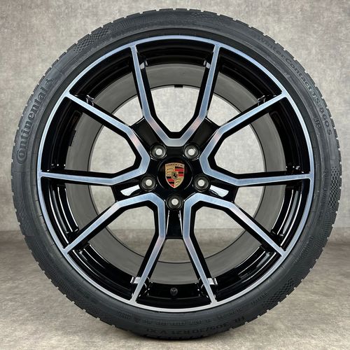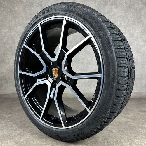 4x Original PORSCHE Taycan (J1 II), Taycan (J1) 21 RS Spyder Felgen Winterkompletträder schwarz hochglanz inkl. glanzdrehbereiche Original Lack VA Dimension: 9,5Jx21 ET60 Teilenummer: 9J1601025BQ 265 35 R21 103V Continental WinterContact TS 860 S NF0, neu HA Dimension: 11,5Jx21 ET66 Teilenummer: 9J1