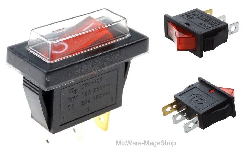 Wippschalter Beleuchtet bei 230V, 15A Geräteschalter mit Wasserdichter Abdeckung