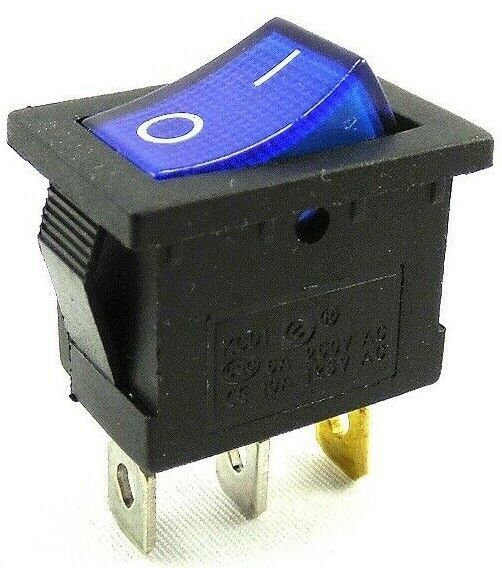 Wippschalter blau 19 x 13 mm, 6 A, 250 V 3 Pin, Wippe beleuchtet