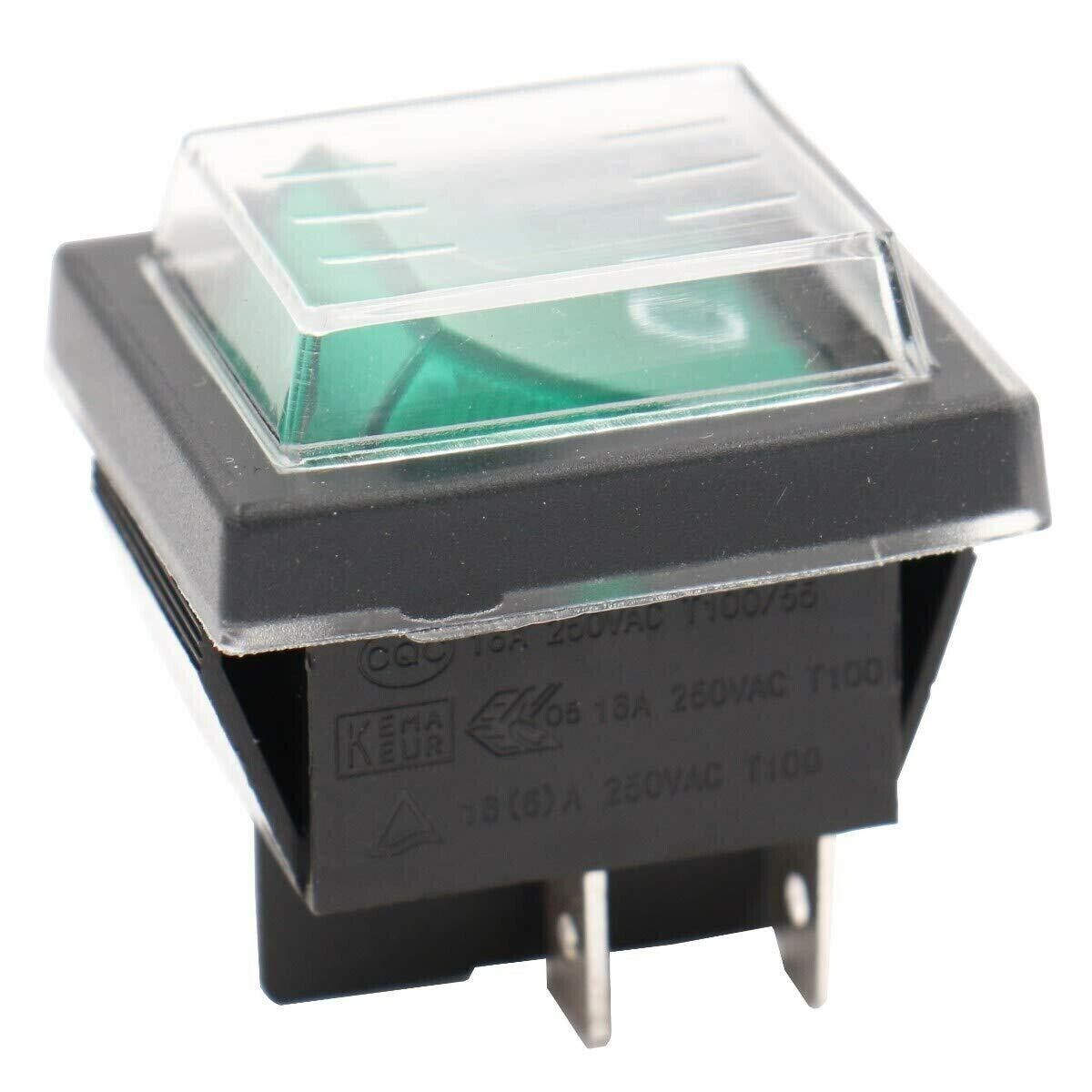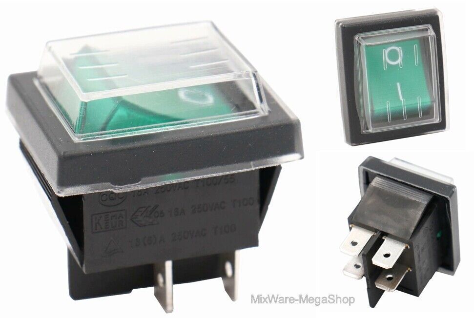 Wippschalter grün mit Wasserdichte Abdeckung (4 Pin) EIN-AUS 250V16A beleuchtet