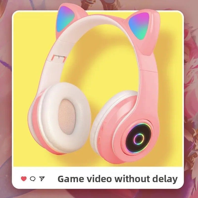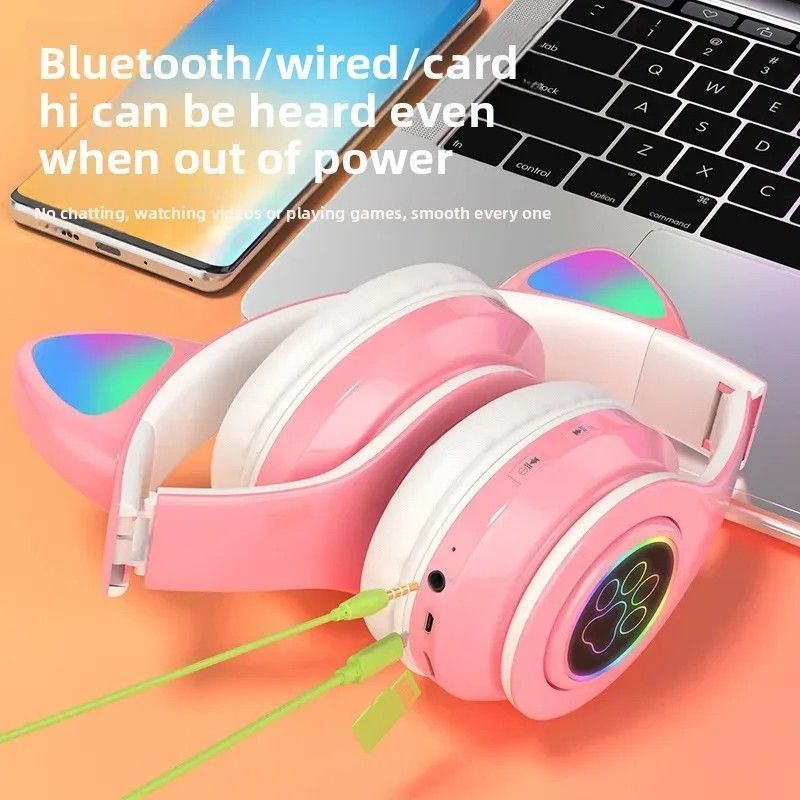 Wireless Bluetooth Headset Glowing Cat Ear Headphones Stereo Music Headphones with Mi