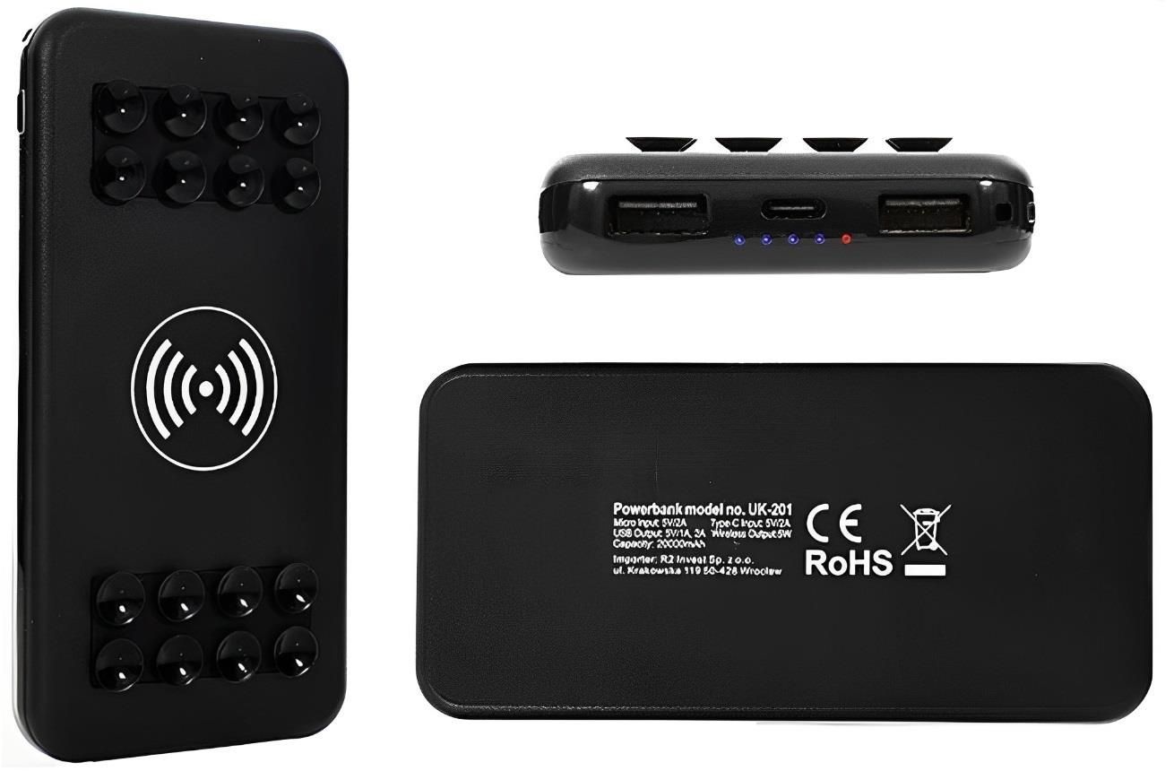 Wireless Powerbank Extern 20000mAh USB Charging für Smartphones Schwarz