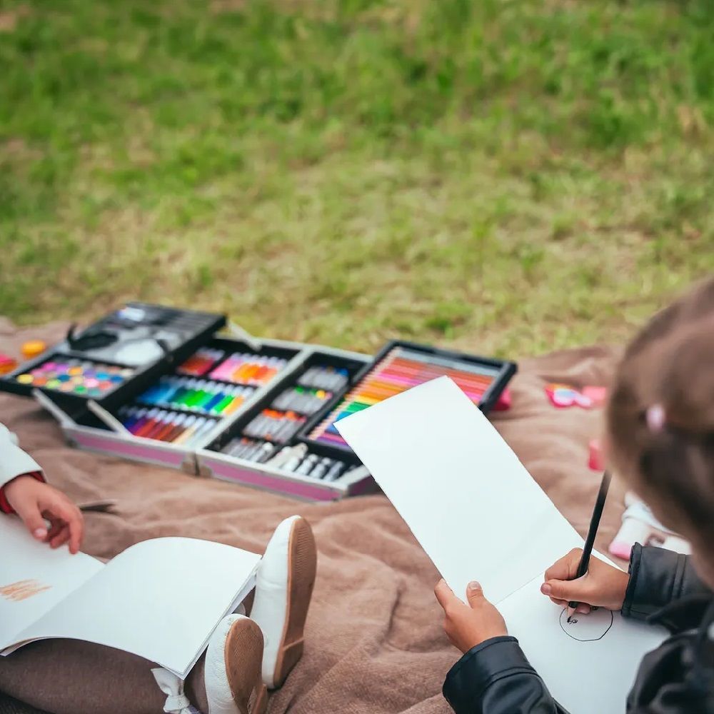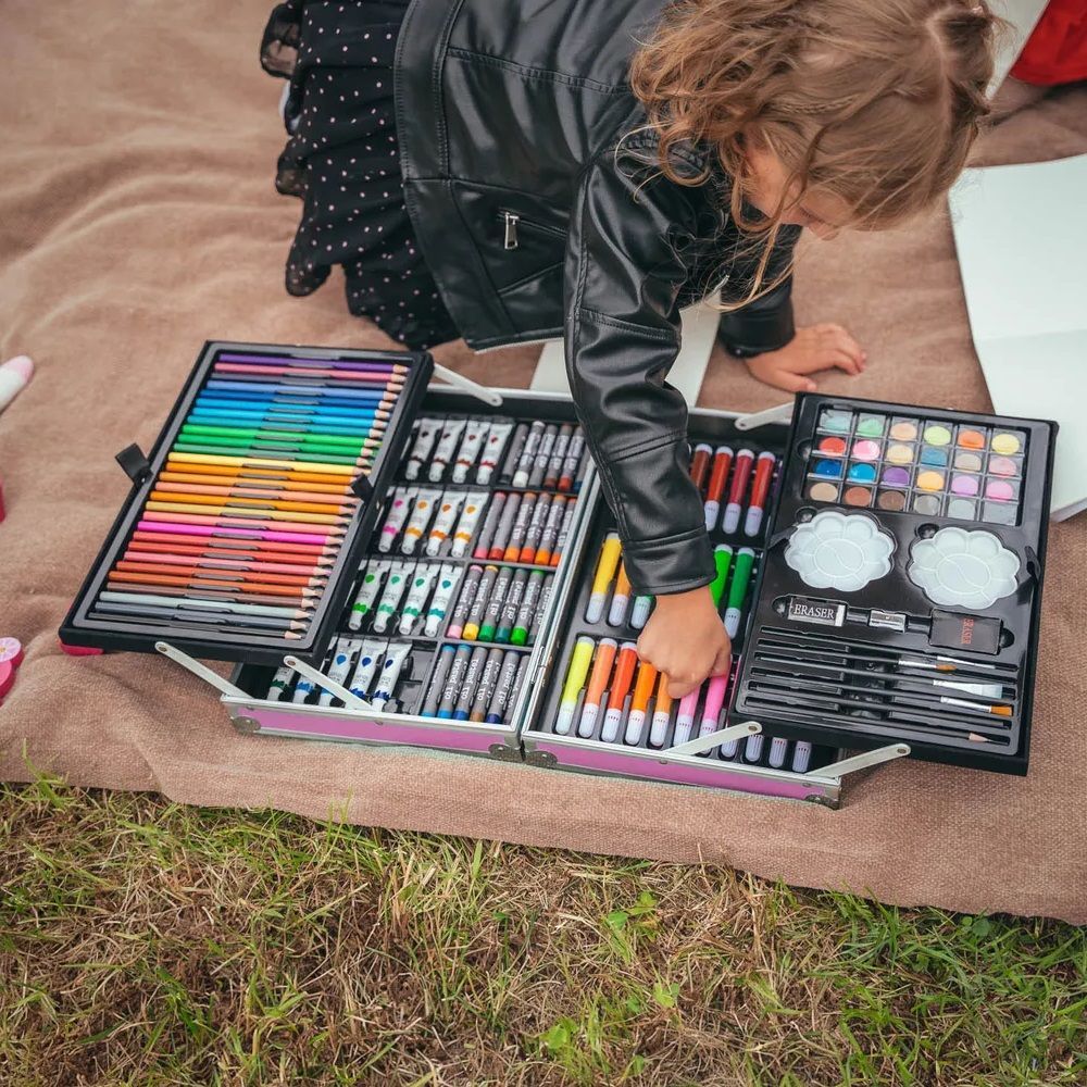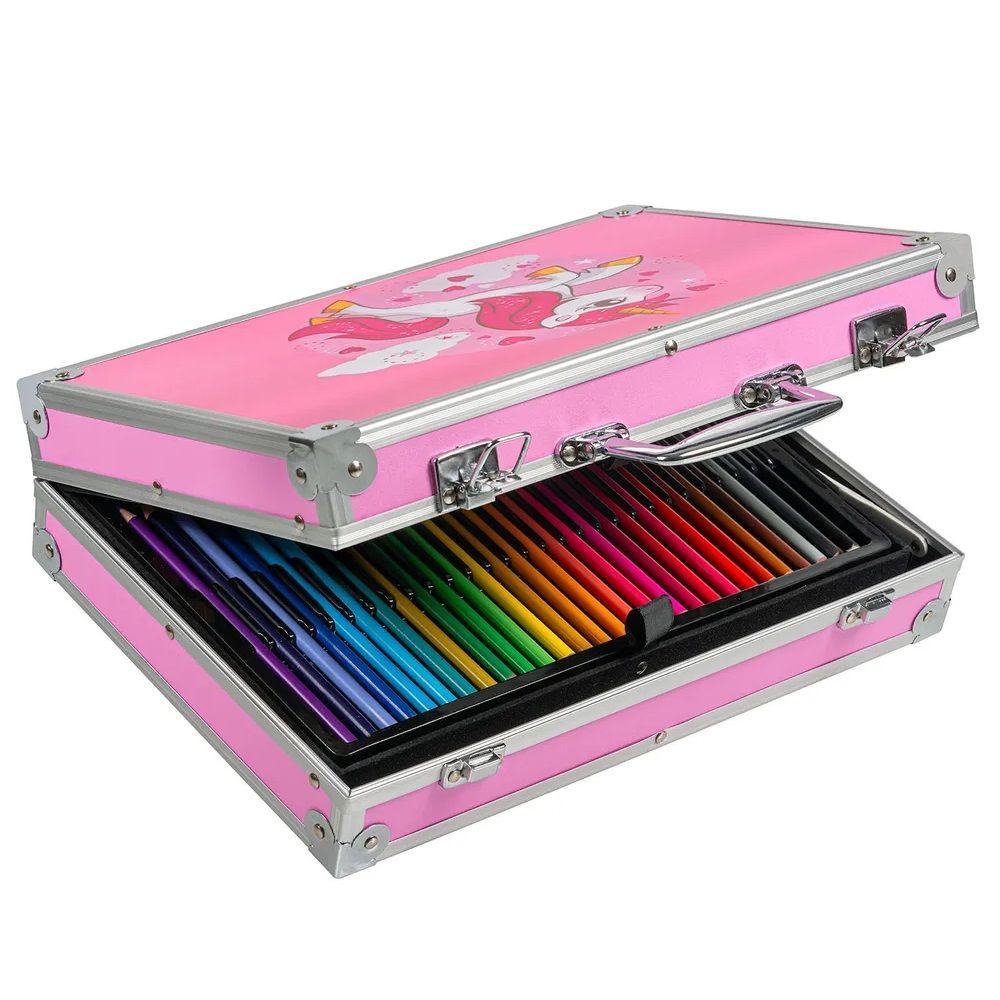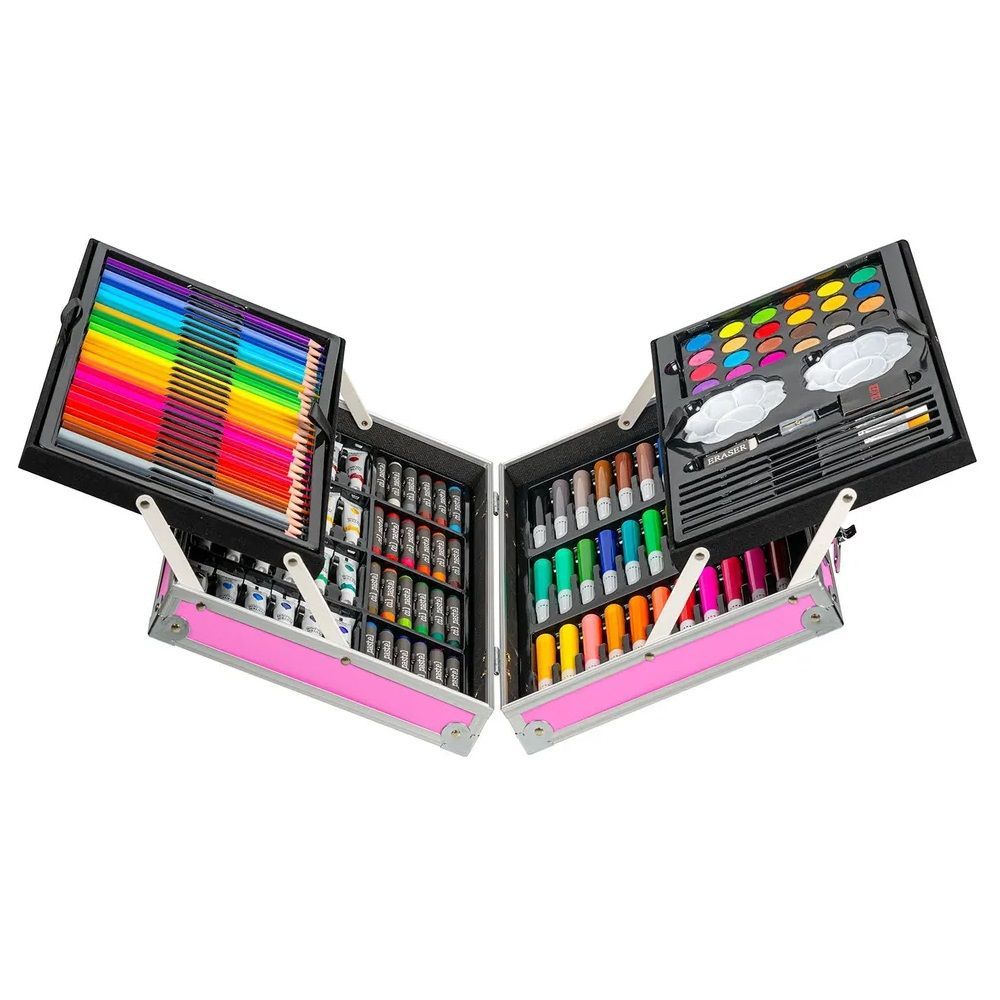 Wisam® 145-teiliger Kunstkoffer für Kinder mit Zeichen- und Malutensilien Rosa