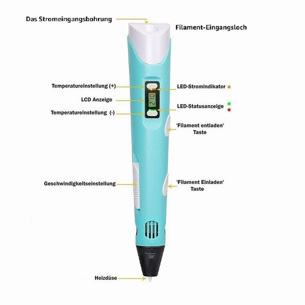 Wisam® 3D Drucker Stift Set Blau für Kinder Erwachsene mit 3 Farben 1.75mm PLA