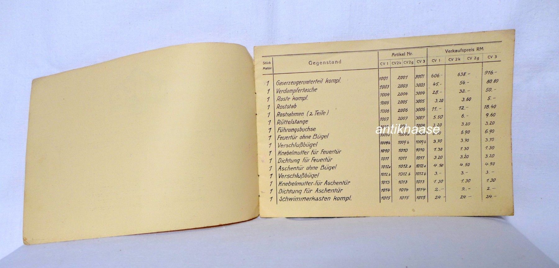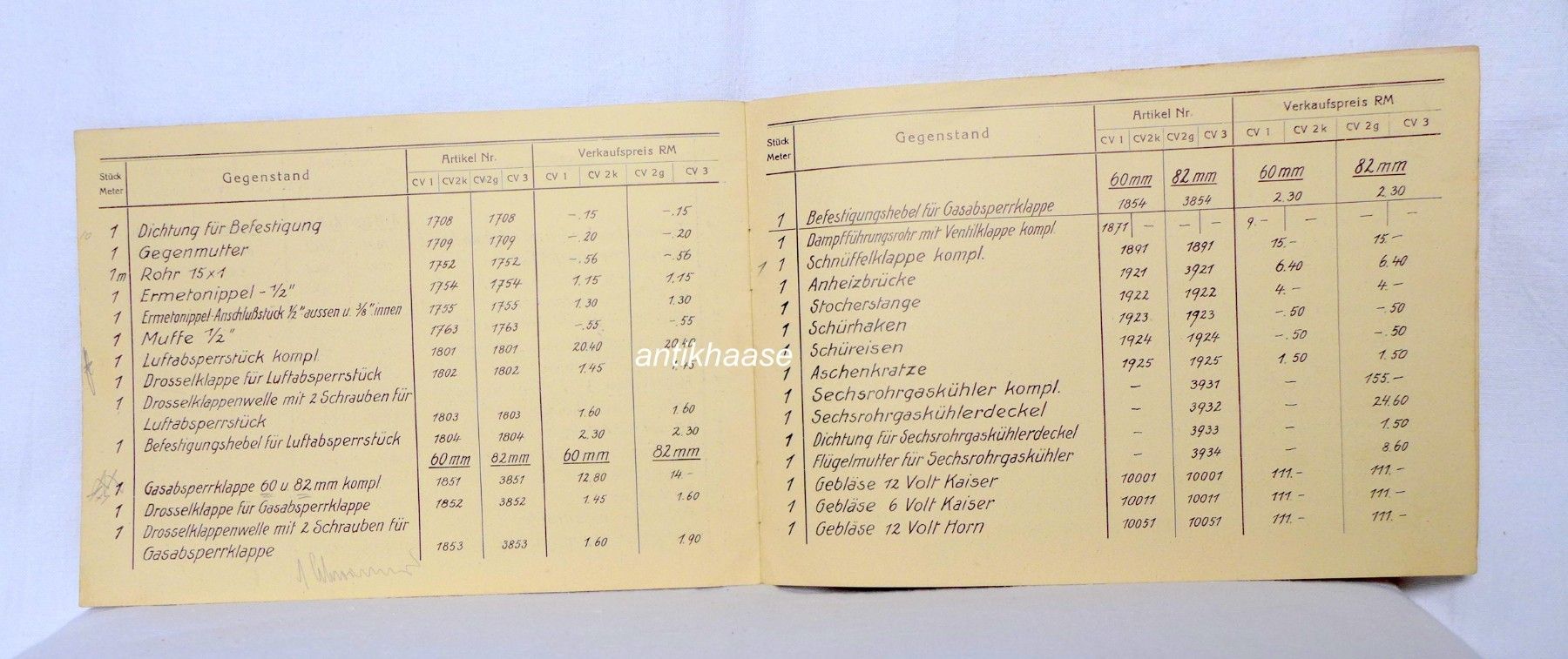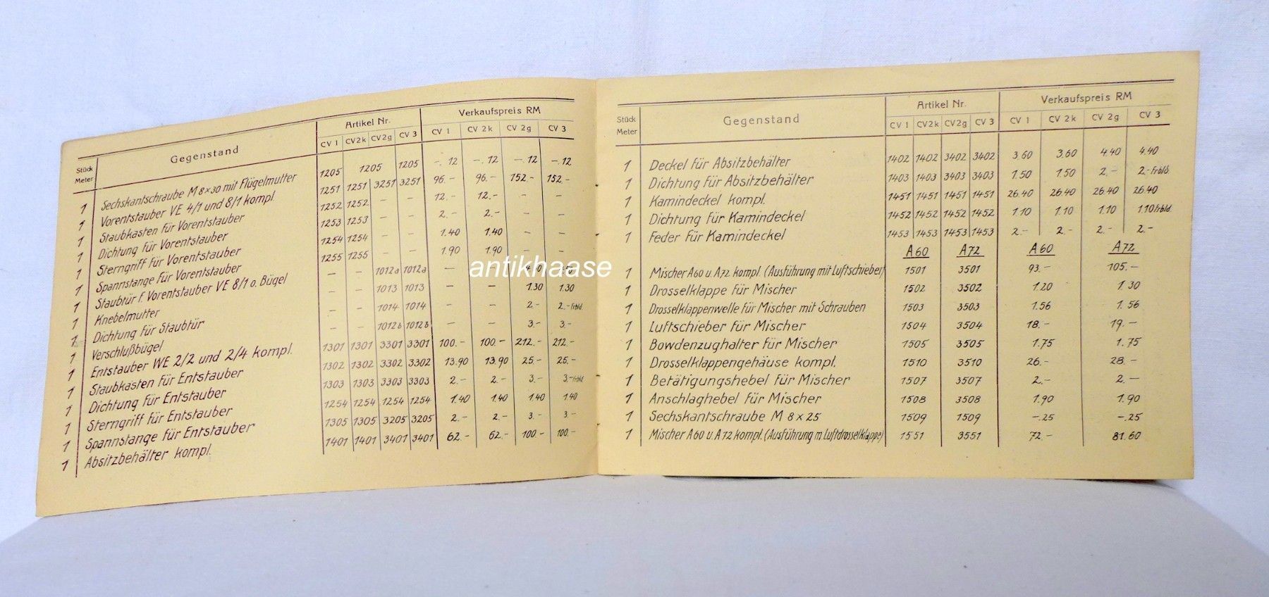 Wisco Fahrzeug Gasgeneratoren Beeskow Ersatzteil Preisliste Bauart CV 1947