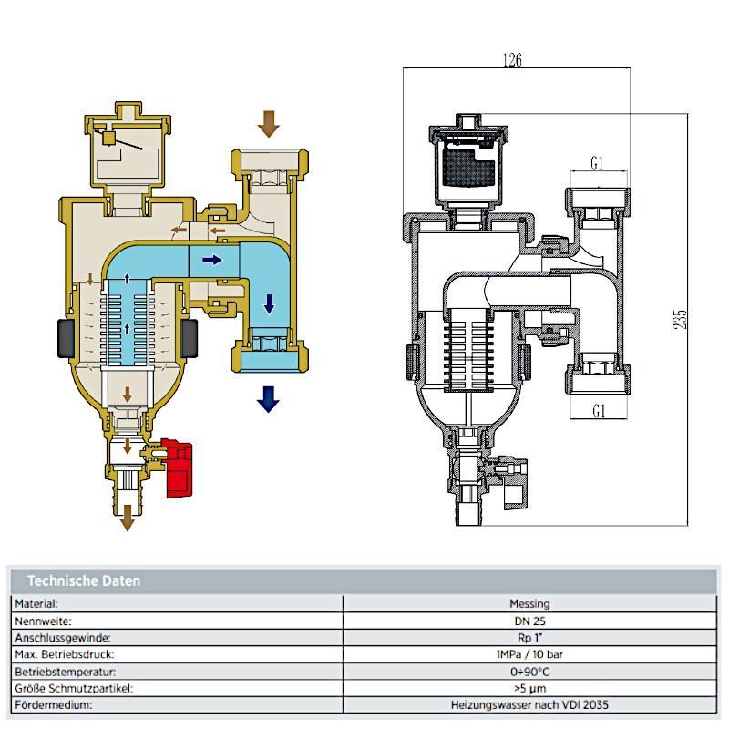 WITA® Trap Schlamm-, Magnetit- und Mikroblasenabscheider, DN 25, 1" IG