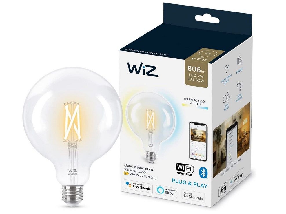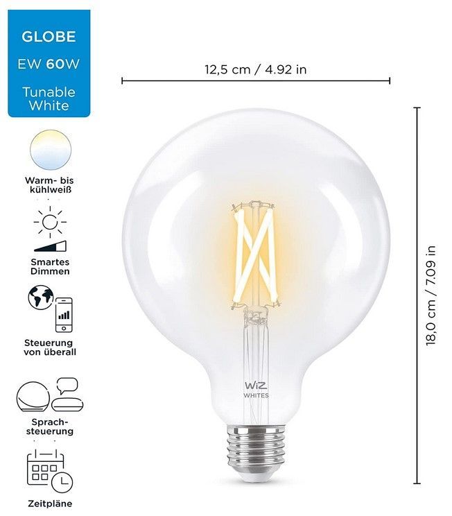 WiZ Tunable White LED Lampe, Globe, E27, 60W, Vintage Design, dimmbar