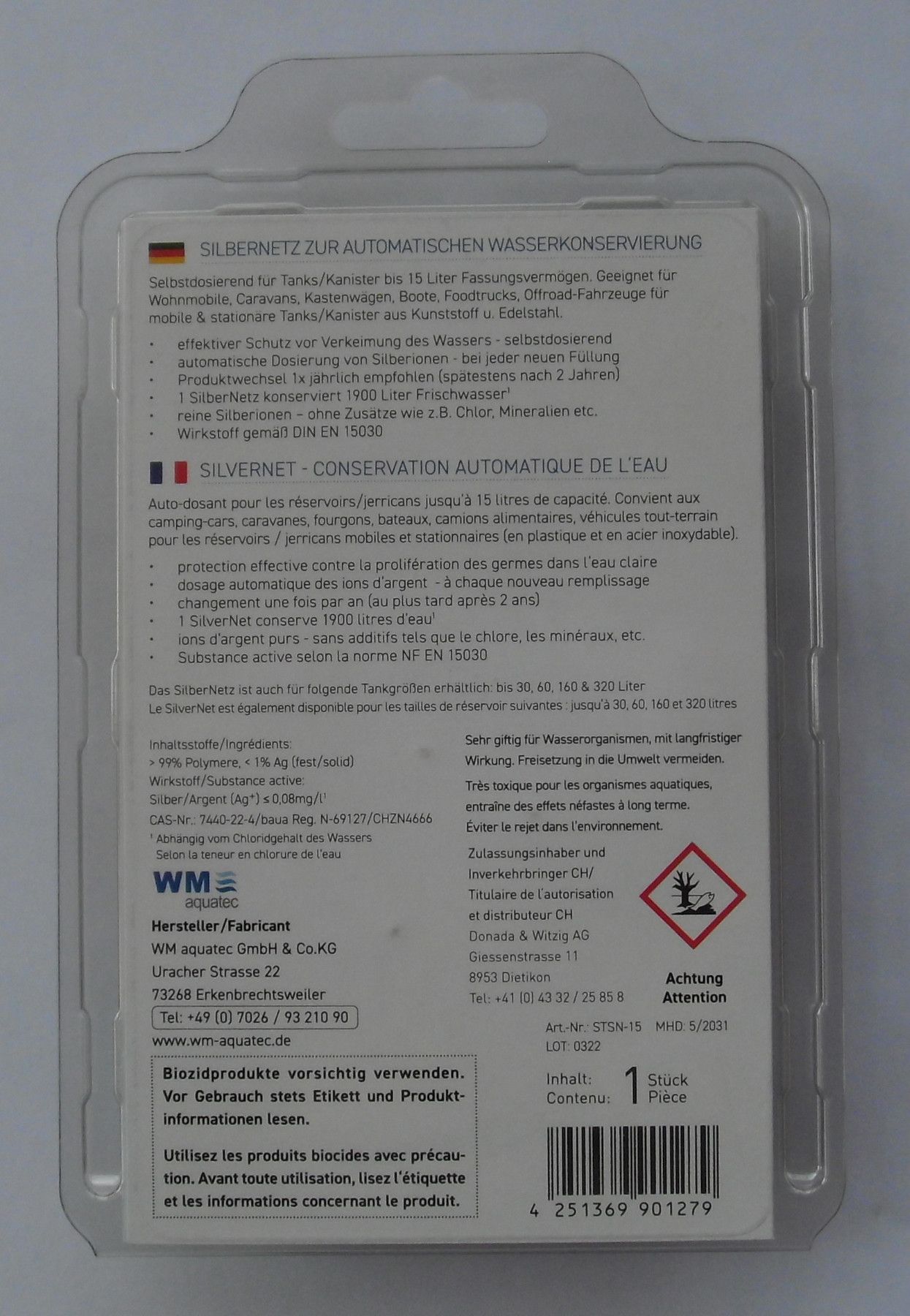 WM aquatec Silbernetz Verkeimungsschutz bis 15 Liter Wassertank 78451p NEU