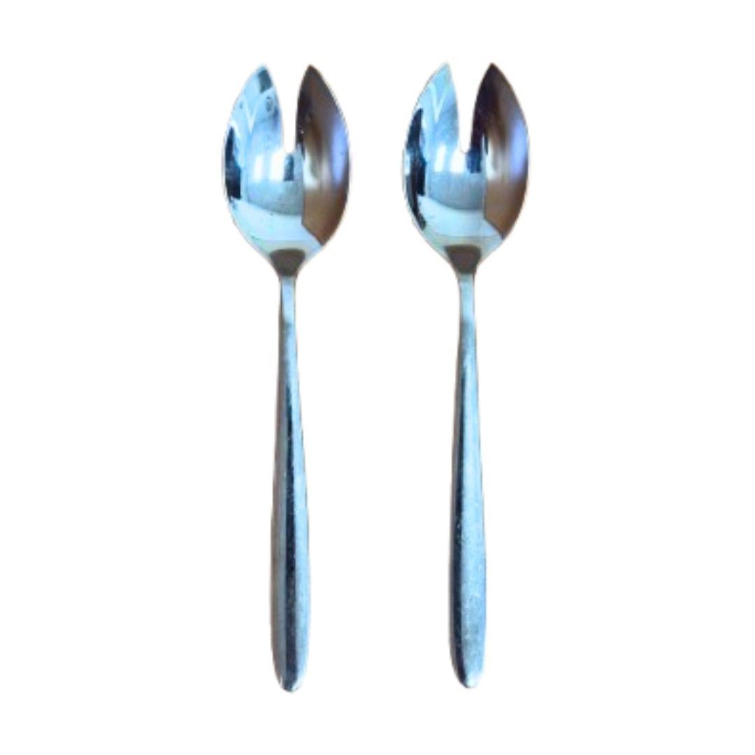 Das WMF FLAME Salatbesteck 2-teilig enthält 2 Salatgabeln à 19,6 cm und vereint modernes Design mit robuster Funktionalität. Hergestellt aus Cromargan Protect Edelstahl 18/10, ist es glänzend poliert, kratzresistent und langlebig.