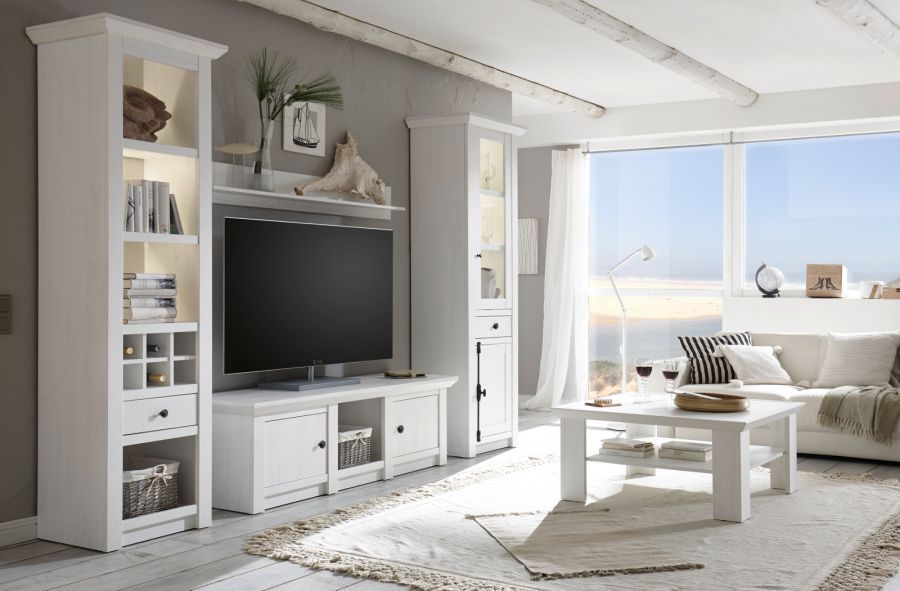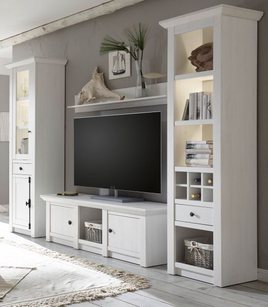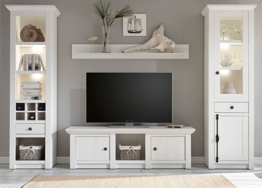 Wohnkombination in Pinie weiß Schrankwand Landhaus Wohnwand 4-tlg. Hooge 293 cm
