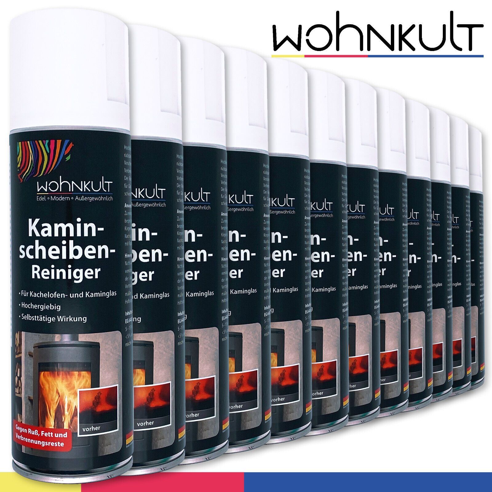 Wohnkult 12 x 300 ml Kaminscheibenreiniger Kachelofen Kaminglas hochergiebig