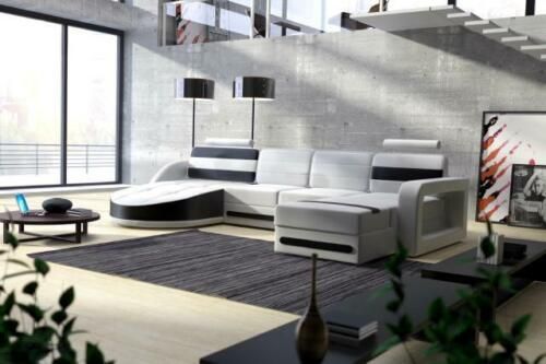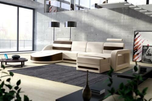 Wohnlandschaft COUCH Garnitur DESIGN Eckcouch Braun-Beige Ledersofa XXL Ecksofa