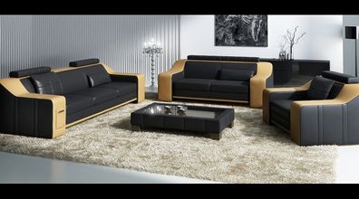 Ledersofa Couch Wohnlandschaft 3 + 2 + 1 Sitzer Garnitur Modern Sofa Garnituren neu