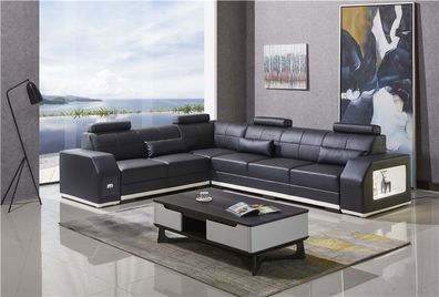 Modernes Ledersofa mit USB Ecksofa Wohnlandschaft Sitz Polster Couch Garnitur