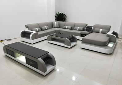 Ecksofa U-Form Couchtisch Polster Garnitur Wohnlandschaft Design Ecksofa Led