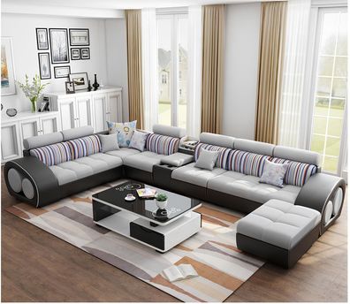 Wohnlandschaft Garnitur Design Modern Sofa Ecksofa Sofa U-Form Ledersofa Couch