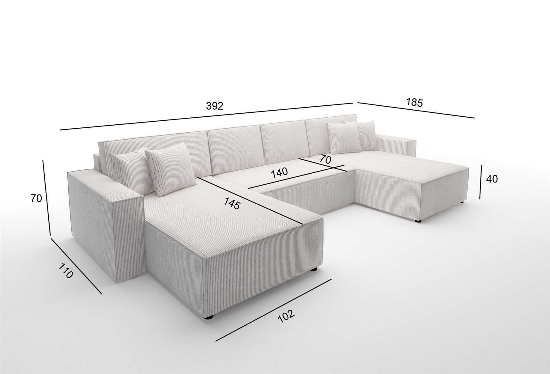 Wohnlandschaft Schlafsofa Sofa CONOR Kunstleder Creme