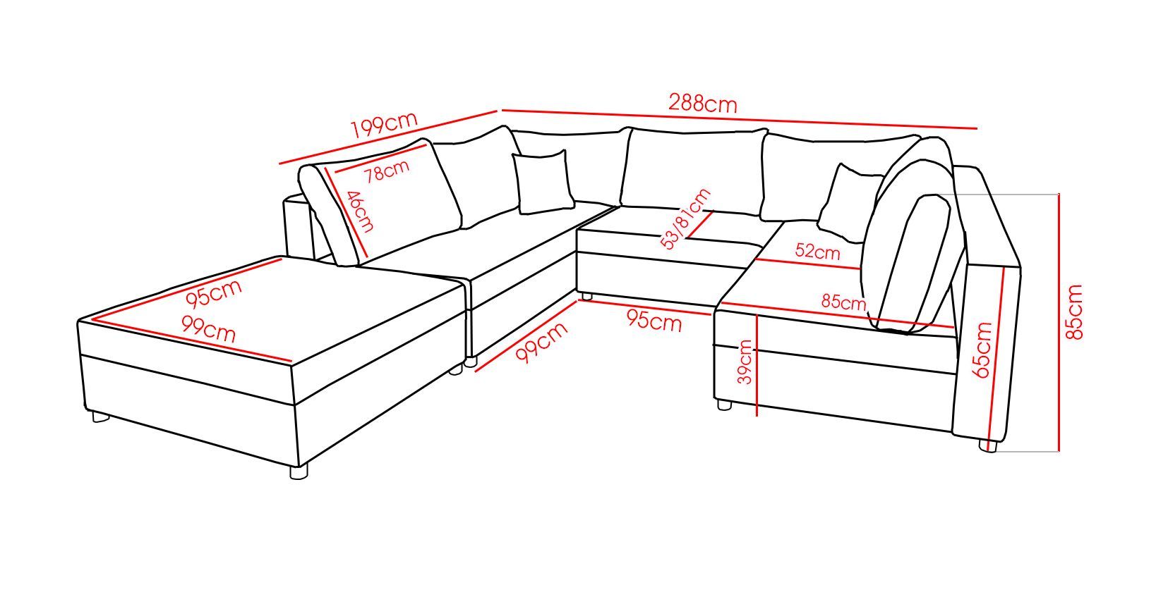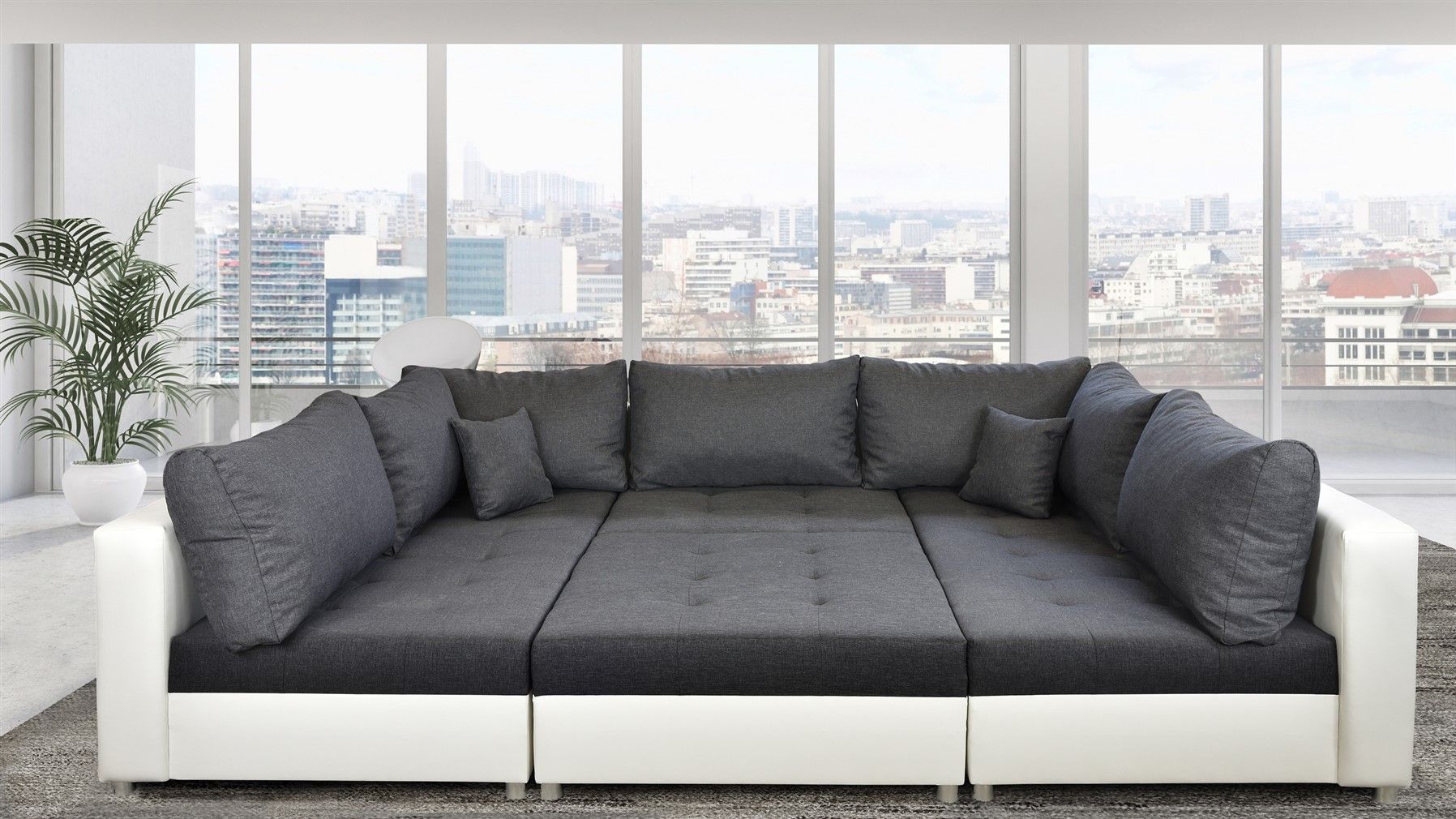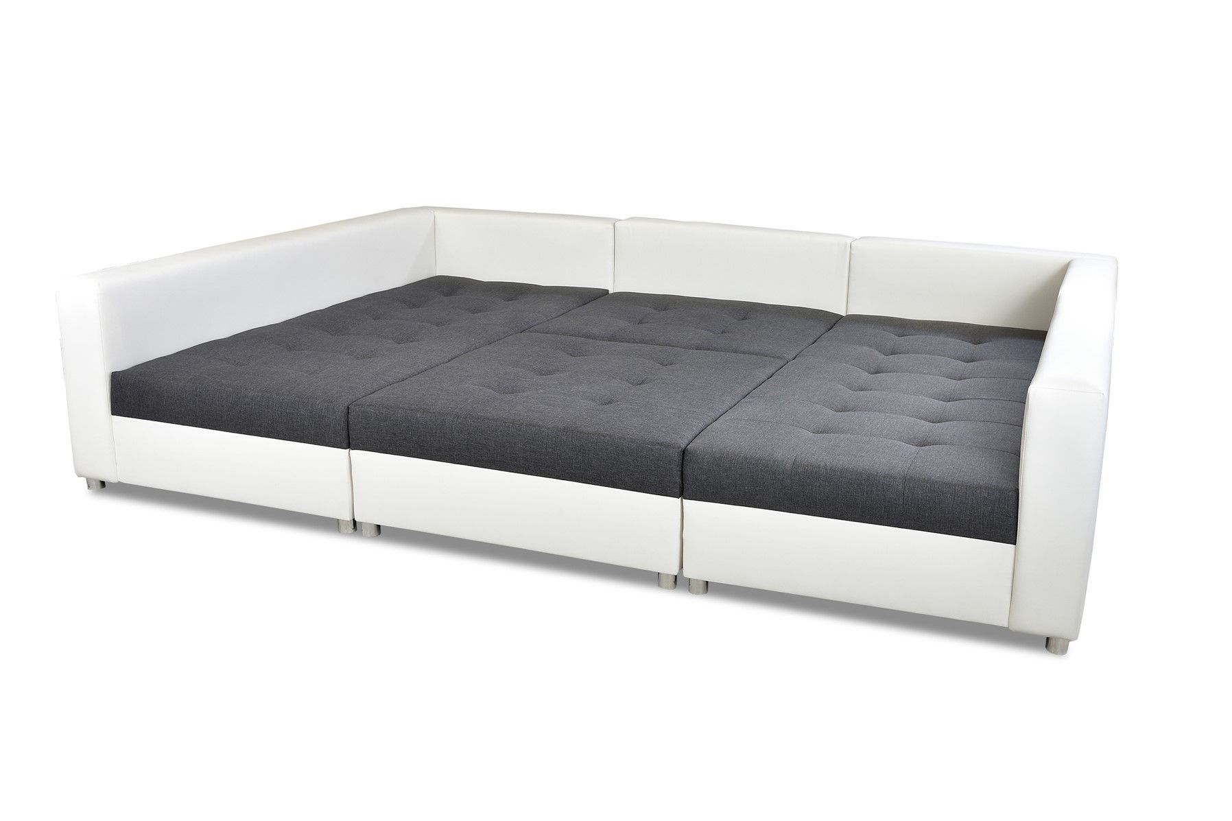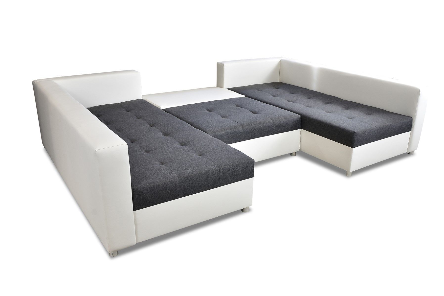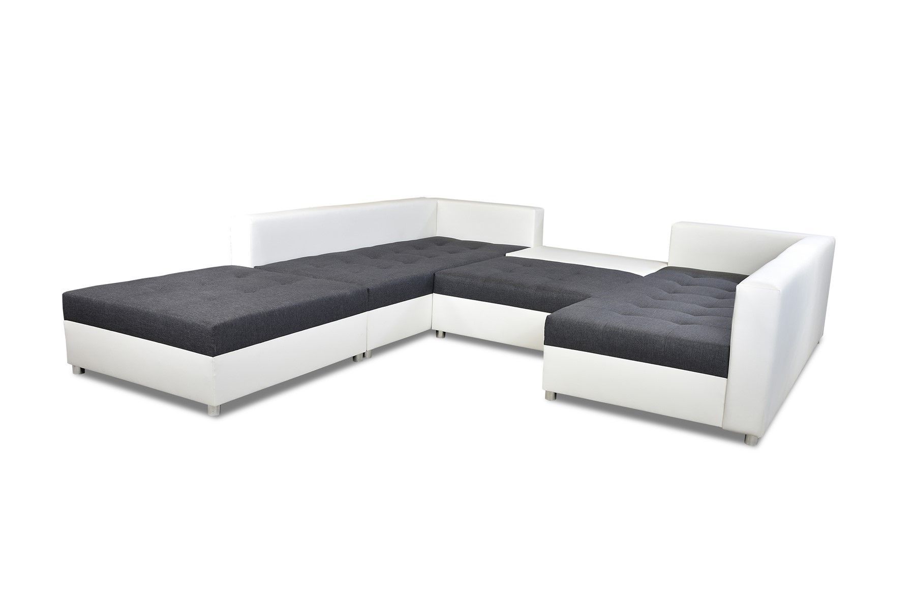 Wohnlandschaft Sofa ANDRO mit Schlaffunktion und Hocker Weiss-Schwarz