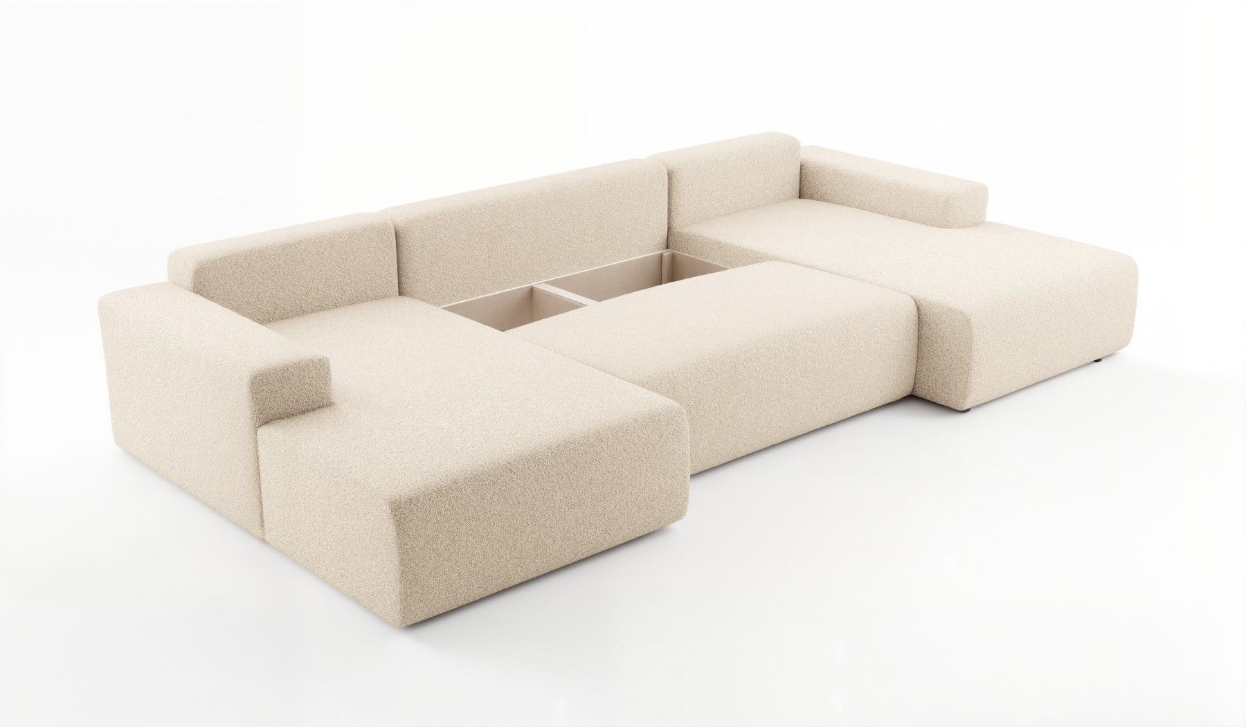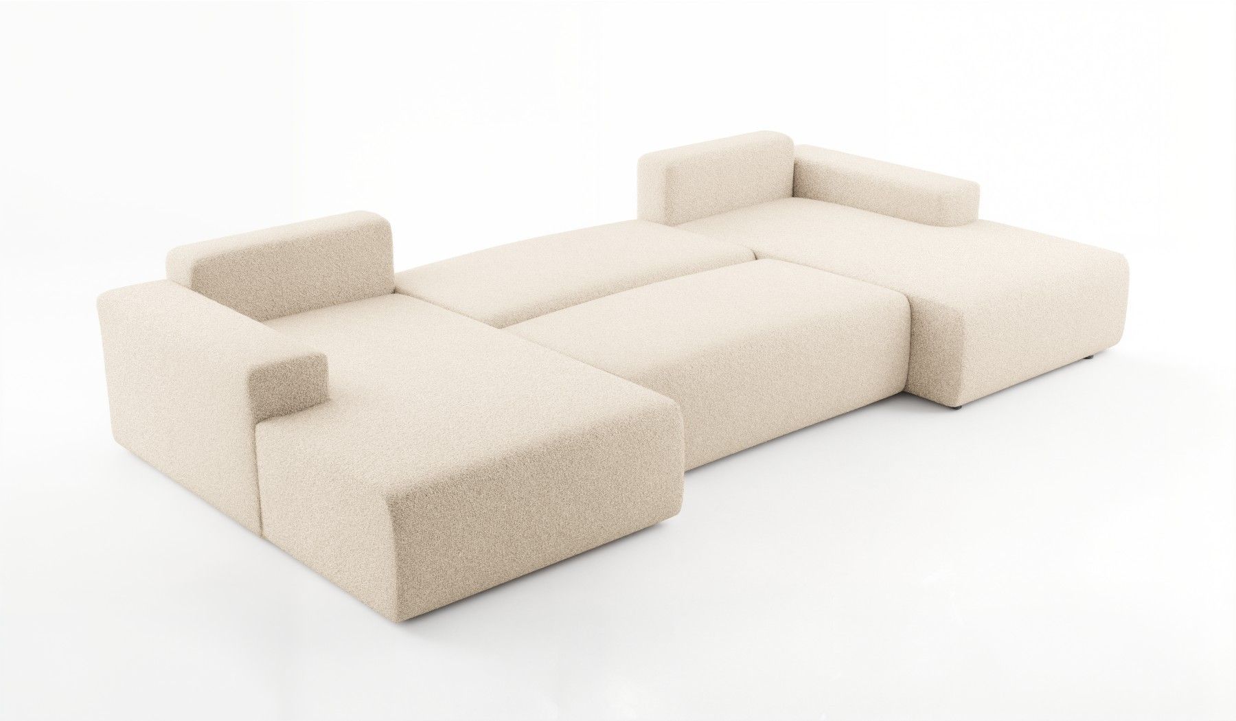 Wohnlandschaft Sofa Ecksofa BOUCLE U-form XXL PULA-U Schlafsofa Bettkasten