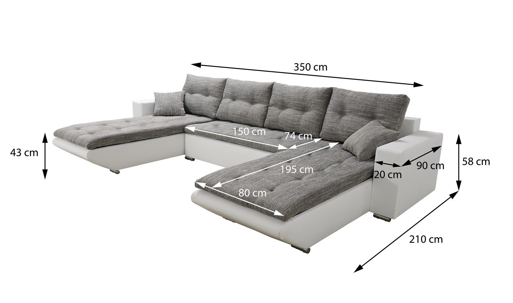 Wohnlandschaft Sofa NINO XL mit Schlaffunktion Schwarz-Grau