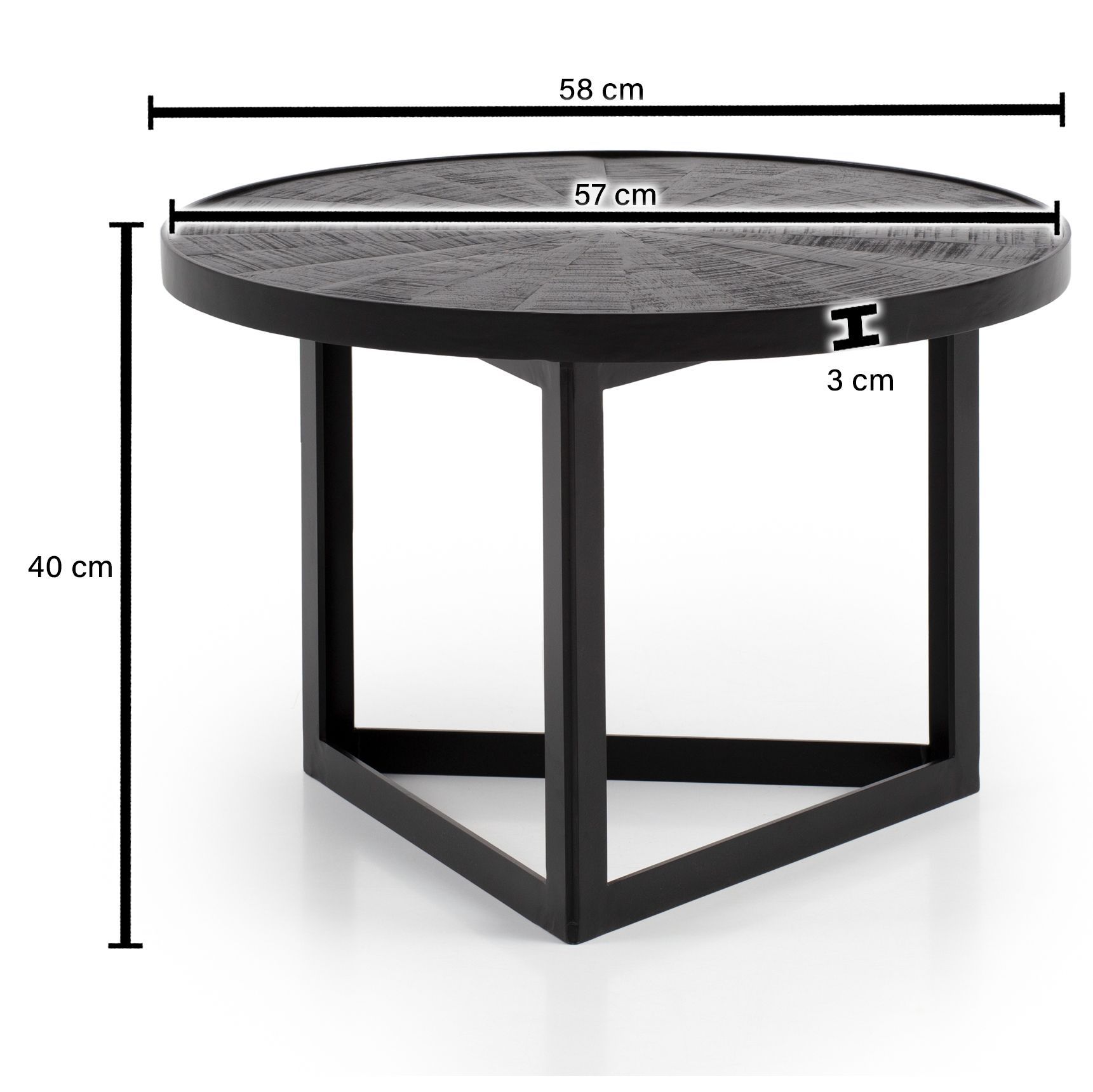 Wohnling Wohnling Couchtisch 58x58x40cm Massivholz Schwarz Sofatisch Wohnzimmertisch Rund