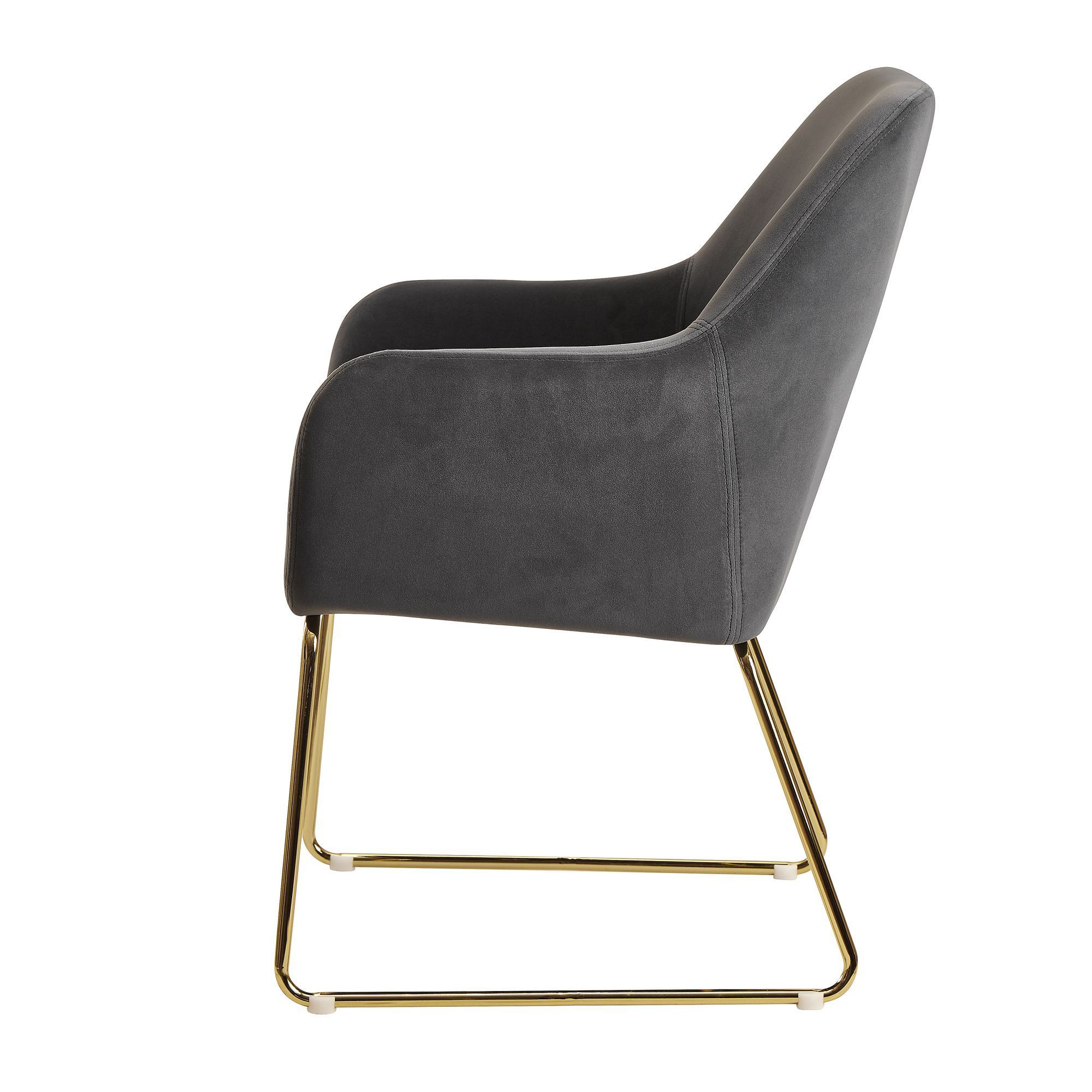 Wohnling Wohnling Esszimmerstuhl Dunkelgrau Samt / Metall Küchenstuhl Polsterstuhl Stuhl