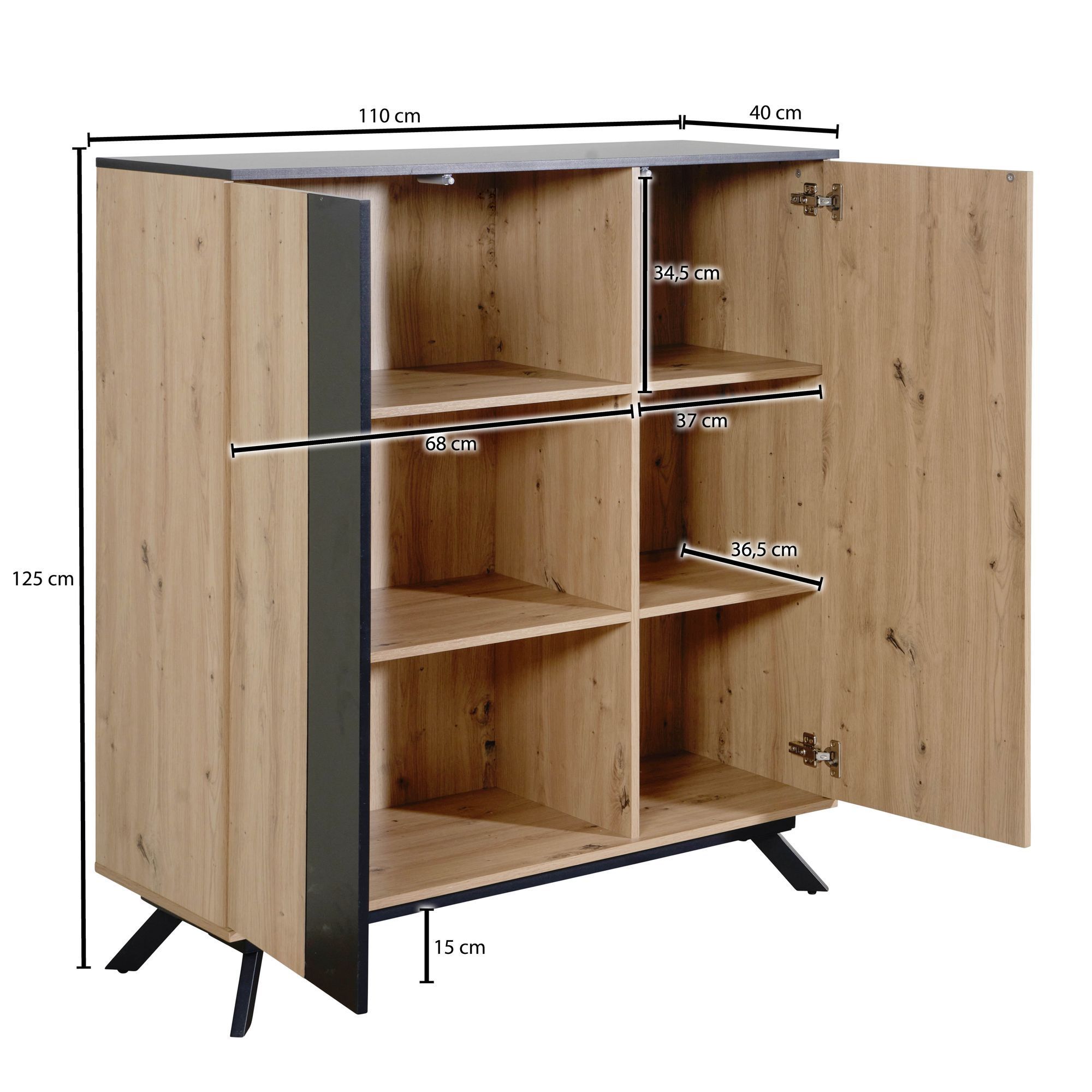 Wohnling Wohnling Highboard 110x125x40 cm MDF Sideboard Eiche Dekor Kommode Anrichte