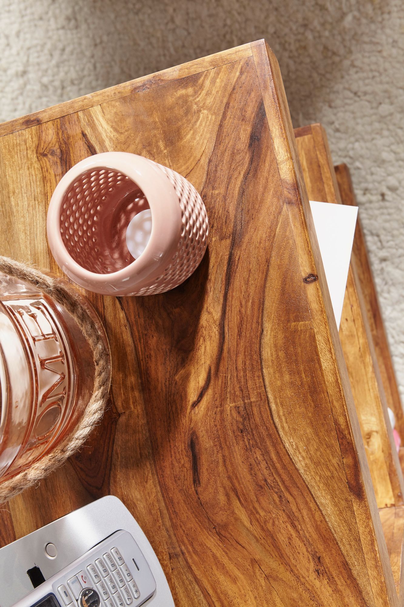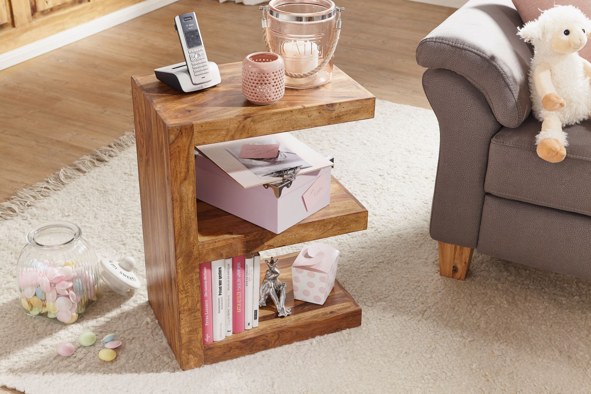 Wohnling Wohnling Massivholz Beistelltisch E- Cube MUMBAI Ablage Stand Bücher Regal 45x60x30