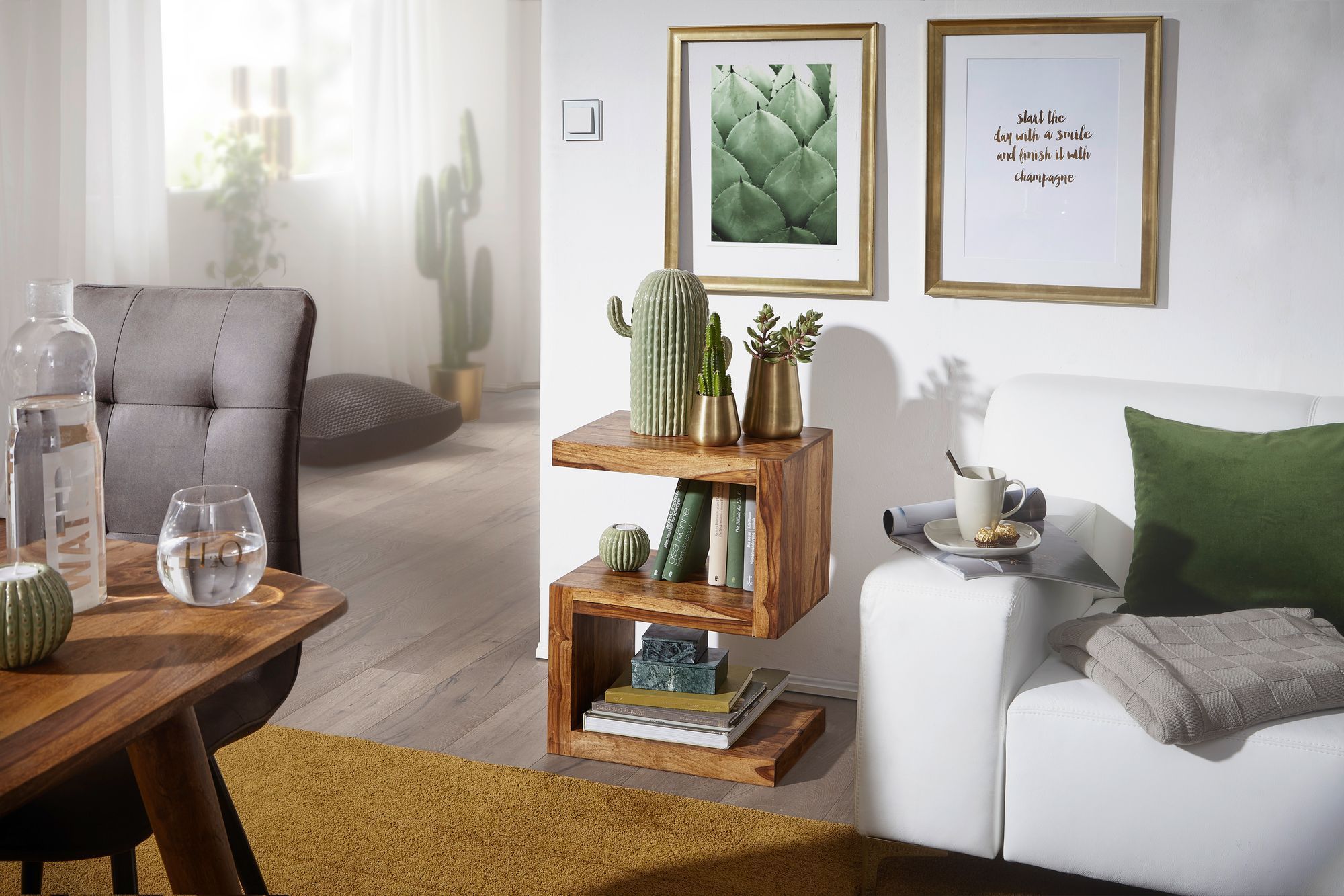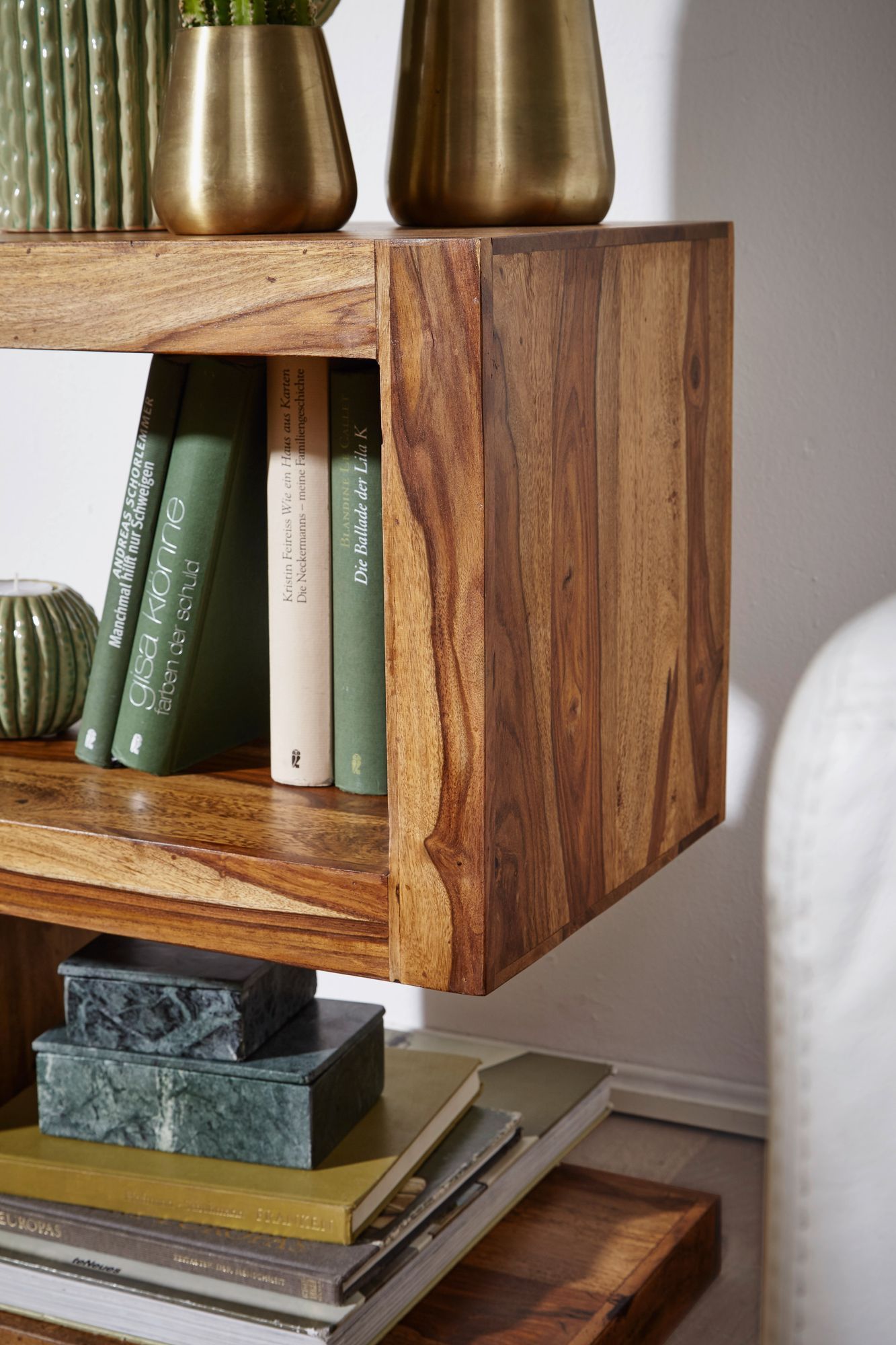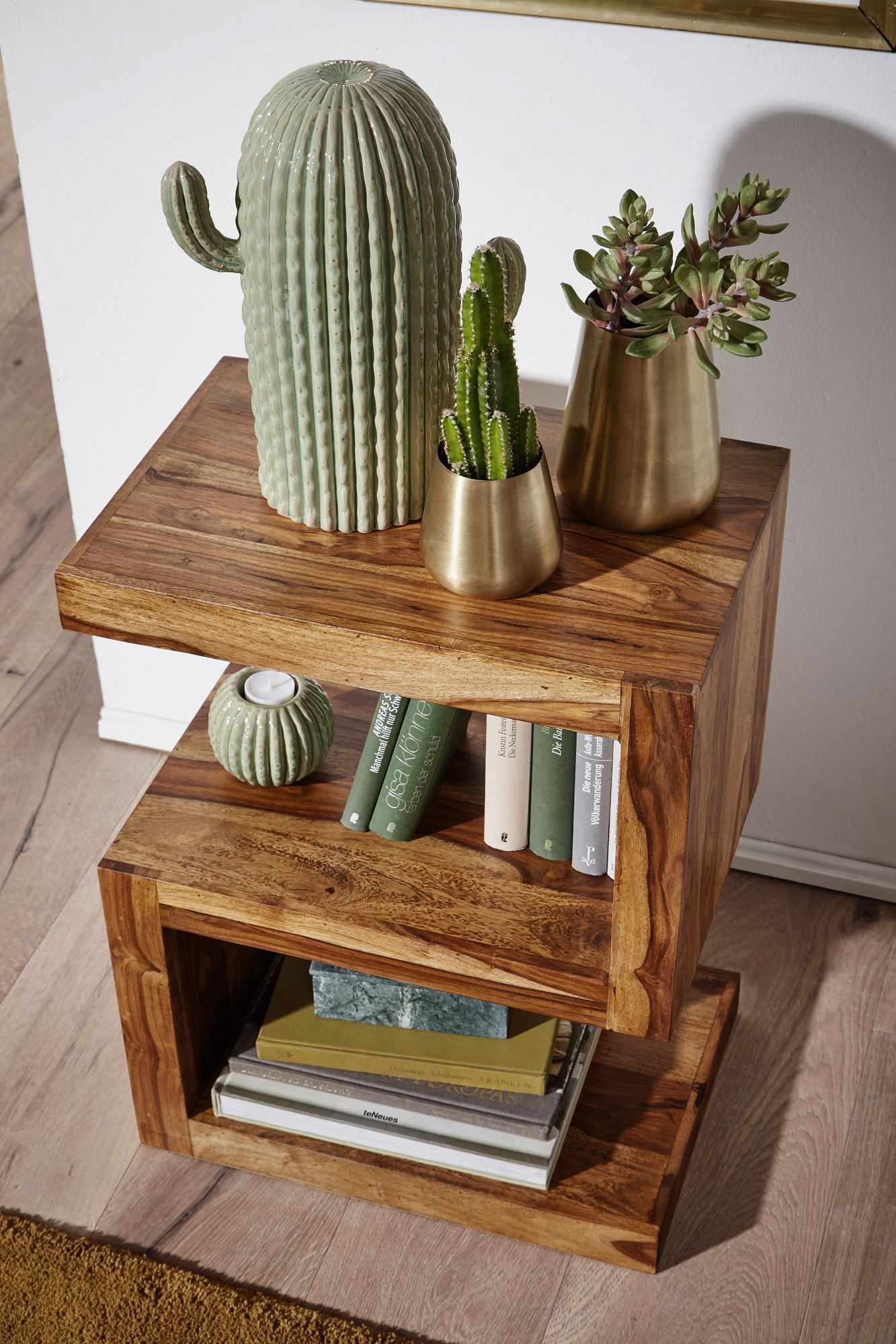 Wohnling Wohnling Massivholz Beistelltisch S- Cube MUMBAI Ablage Stand Bücher Regal 44x30x59