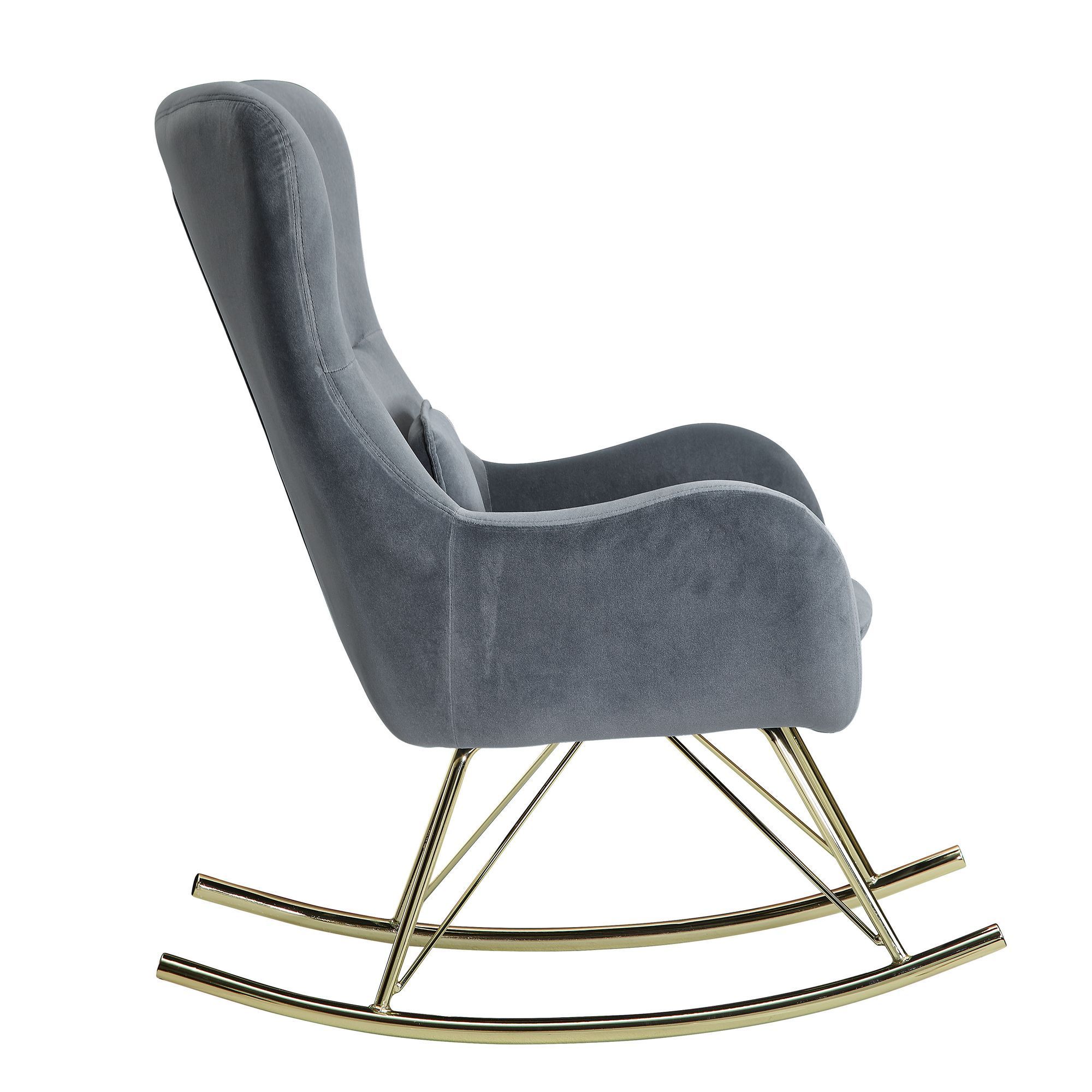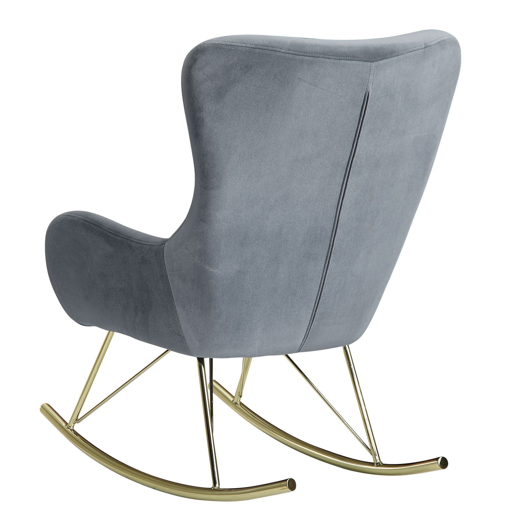 Wohnling Wohnling Schaukelstuhl Dunkelgrau Sessel Samt / Metall Schwingstuhl 74x101x89 cm