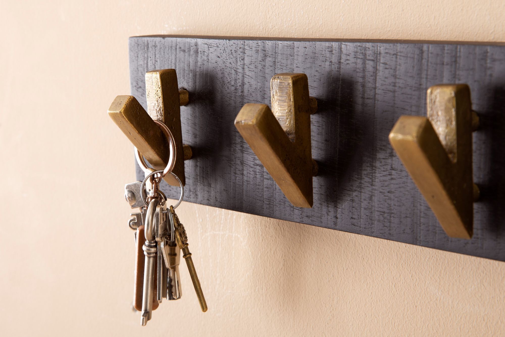 Wohnling Wohnling Wandgarderobe Hakenleiste Holz Massivholz 60 cm Garderobe Flur Schwarz