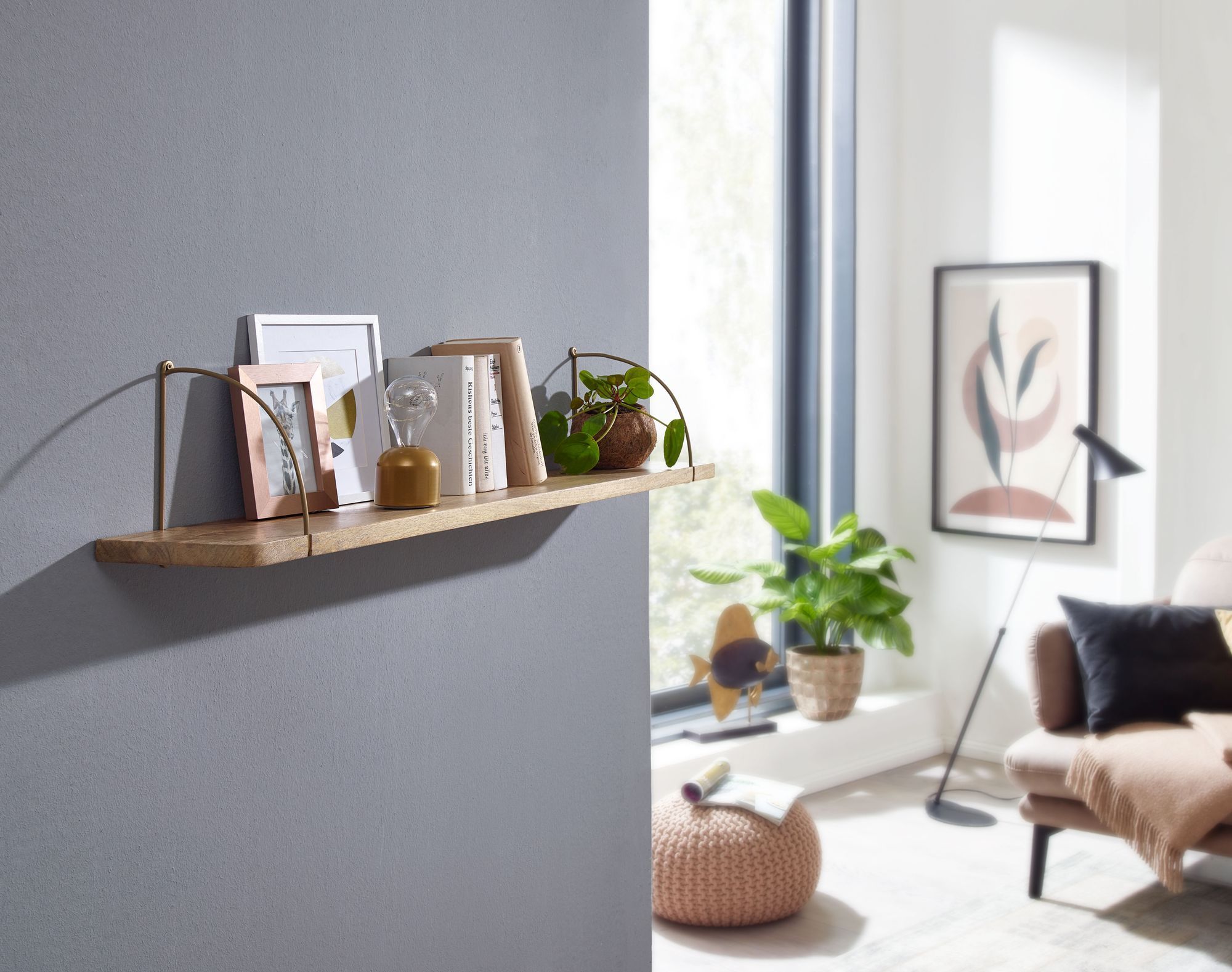 Wohnling Wohnling Wandregal Holz Metall 120x25x22 cm Hängeregal Regal Groß Industrial
