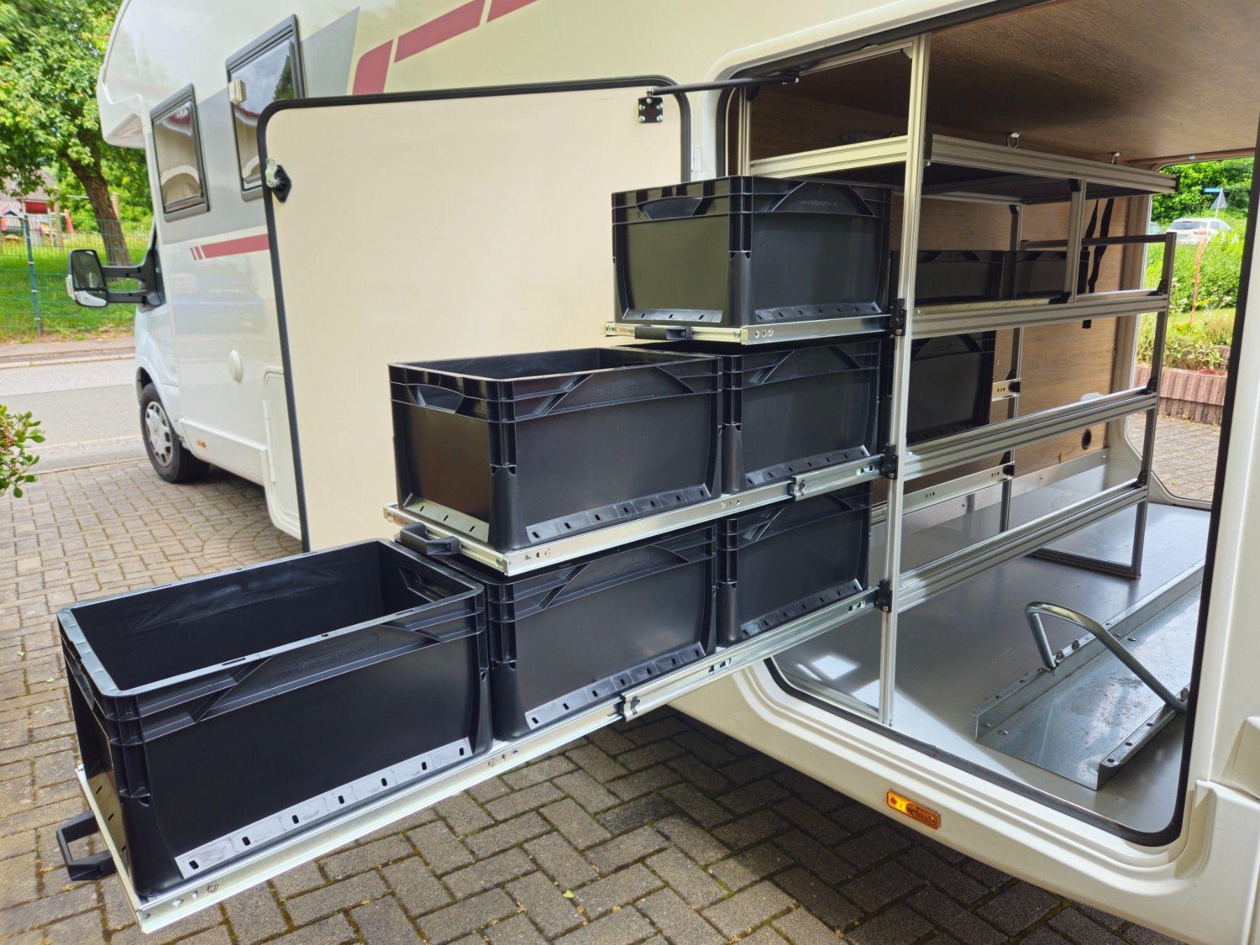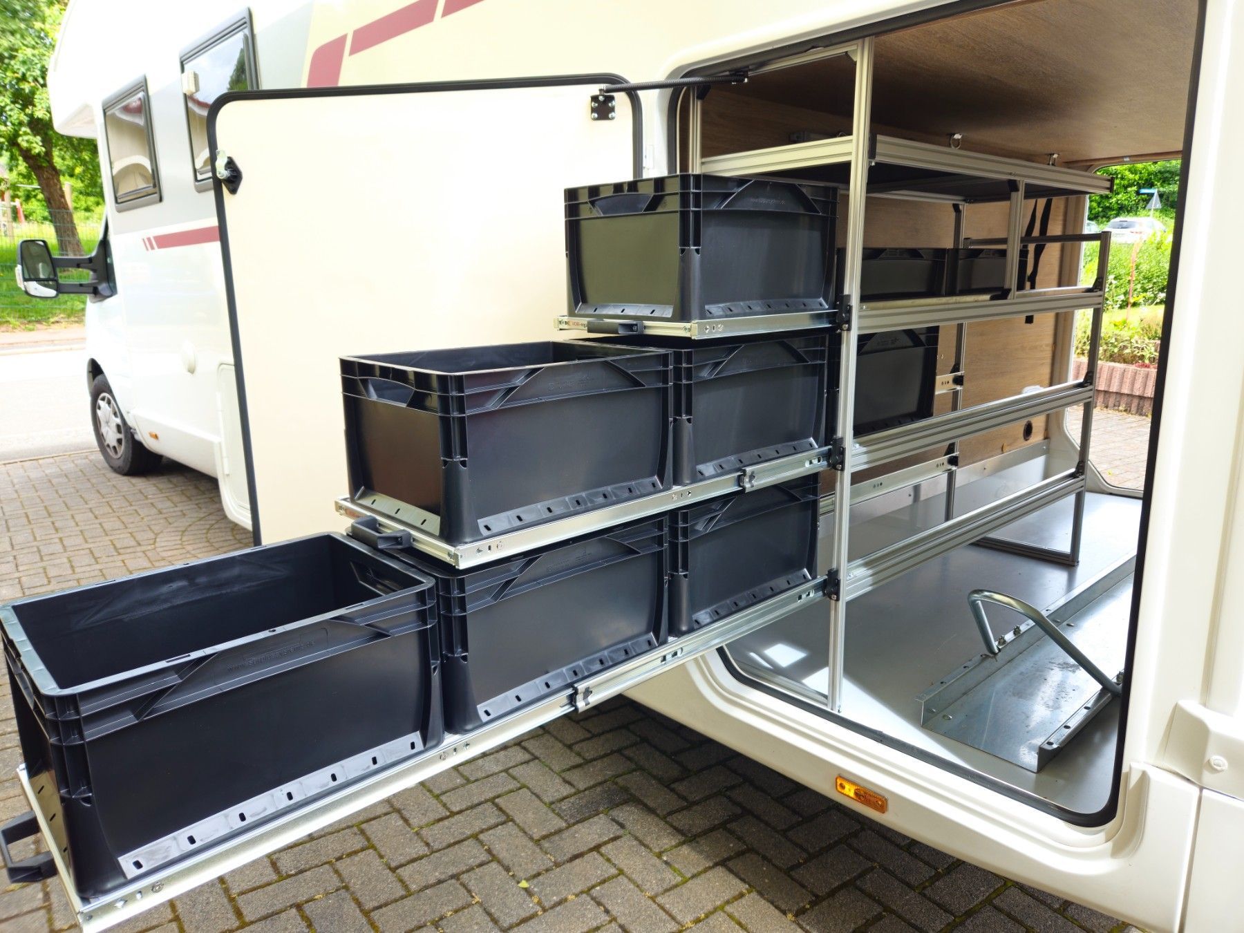 VOBI Regalsysteme Wohnmobil Regal Regalsystem Vollauszug Heckgarage WOMO Euro Box 40cm x 30cm
