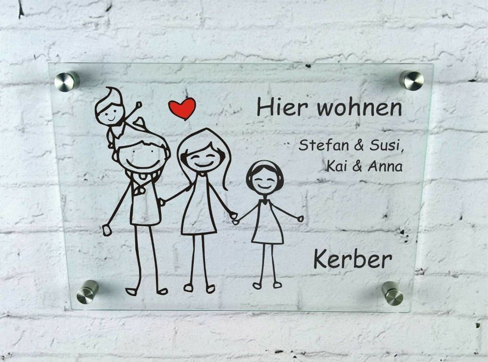 Wohnungsschild Illustriert Display Schild Familientürschild Comic Acryl / Glas A4