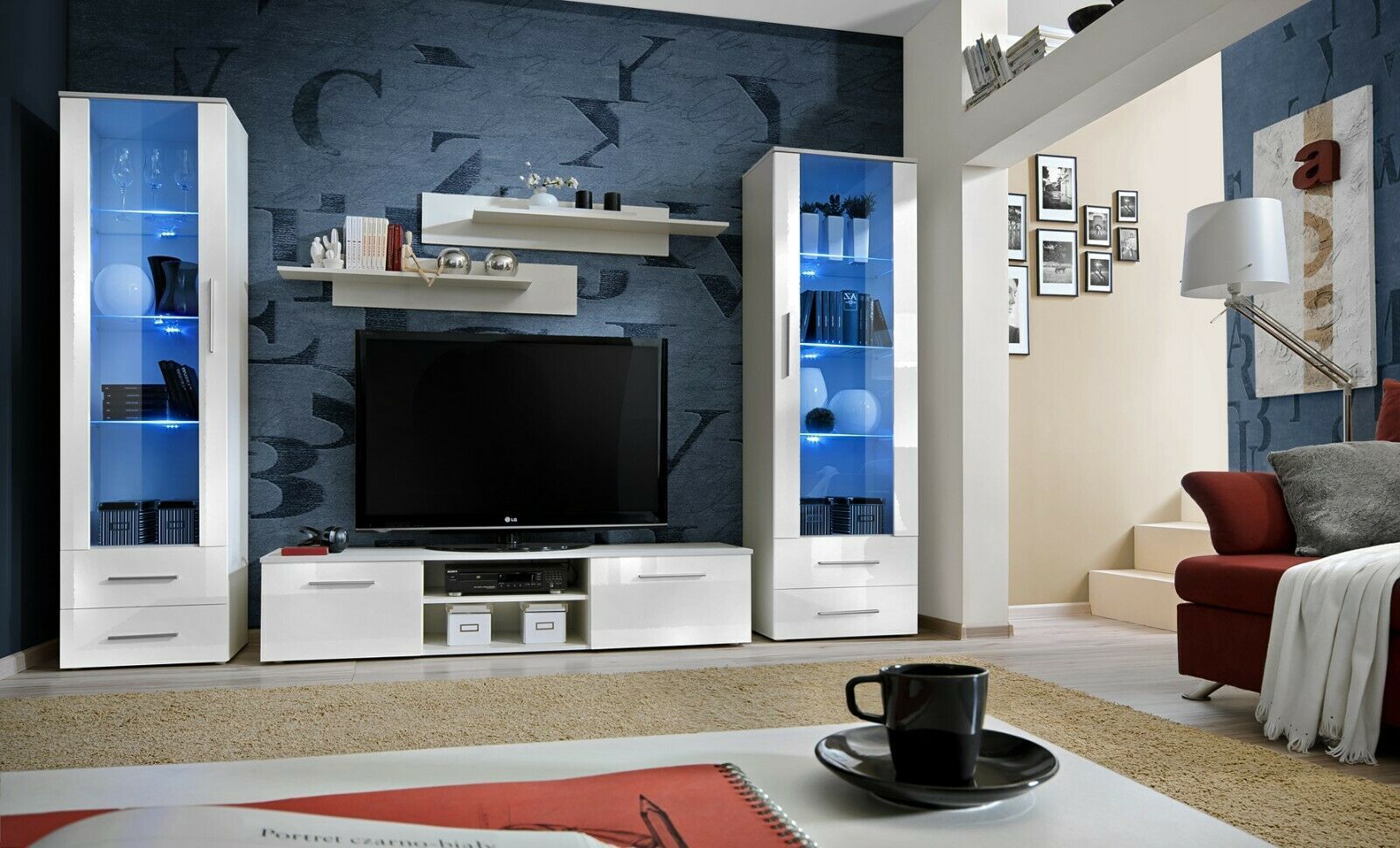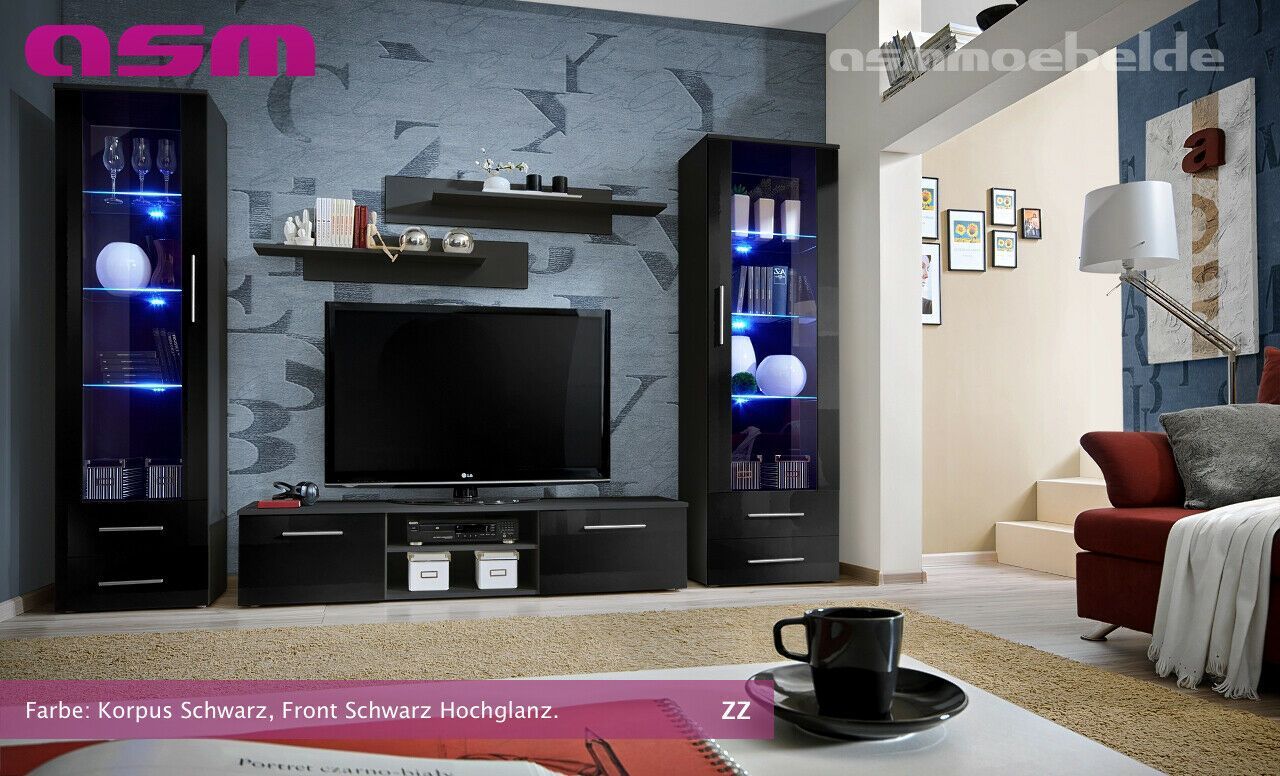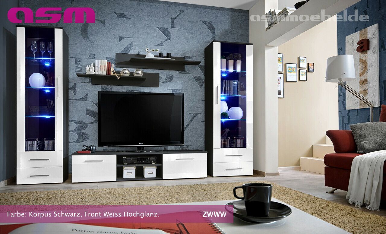 Wohnwand Anbauwand Wohnzimmer Schrankwand GALINO C mit Hochglanz LED Beleuchtung