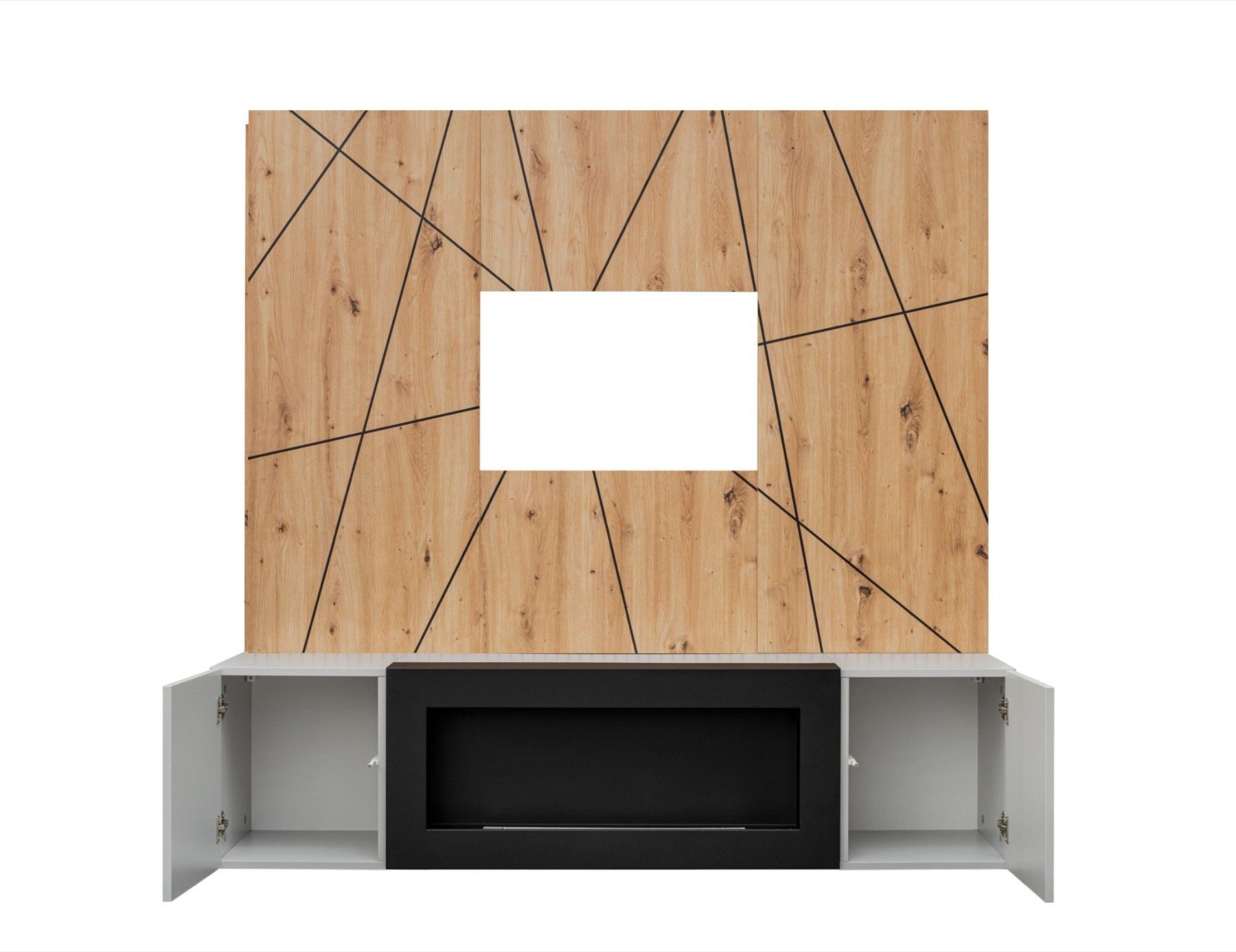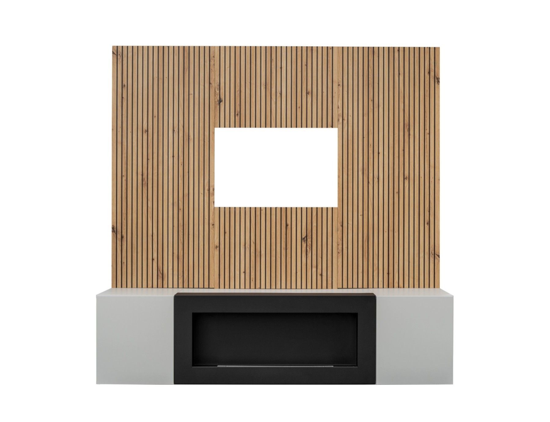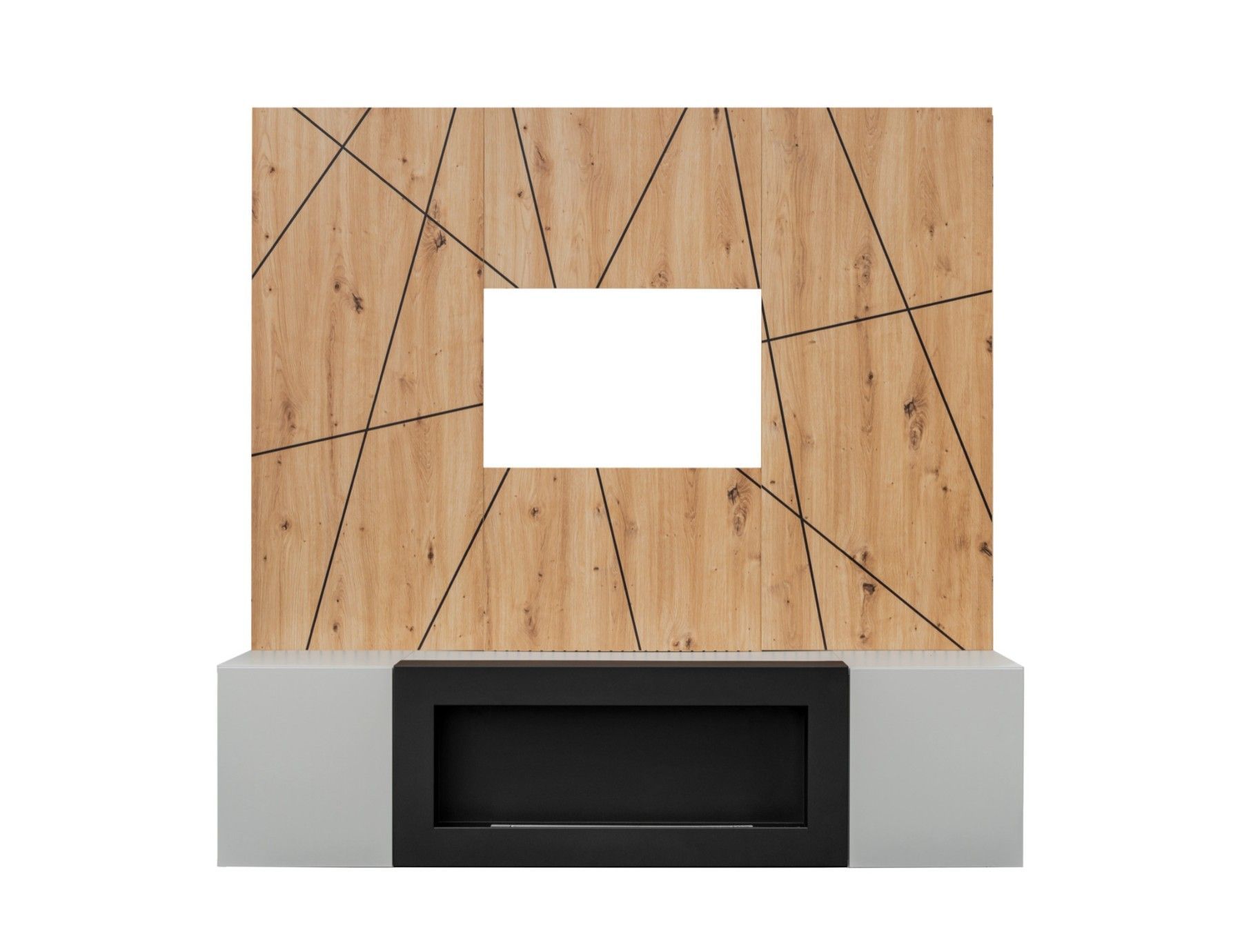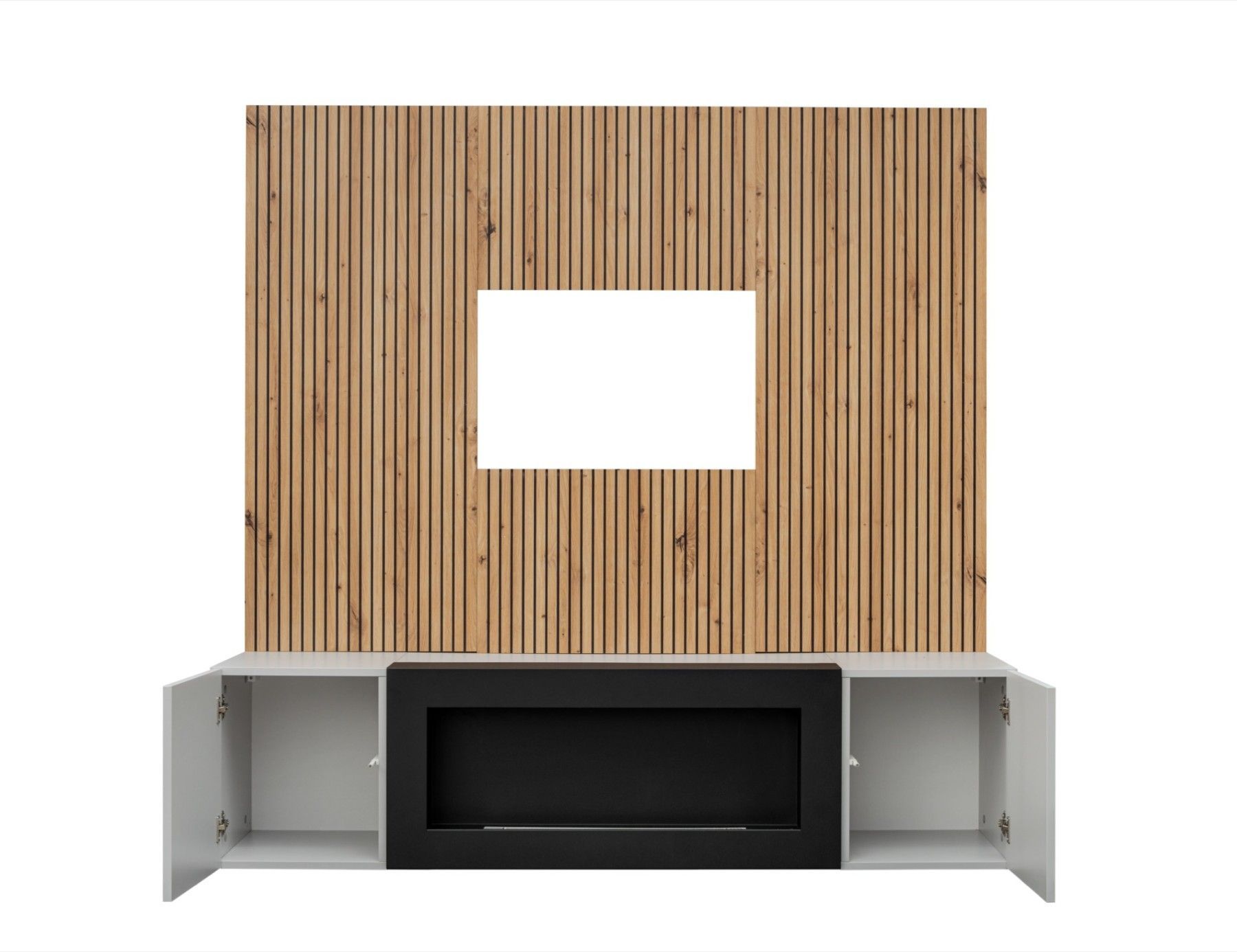 Wohnwand Anbauwand XARI II PGAS-K mit Push - Click und Bio-Ethanol Kamin