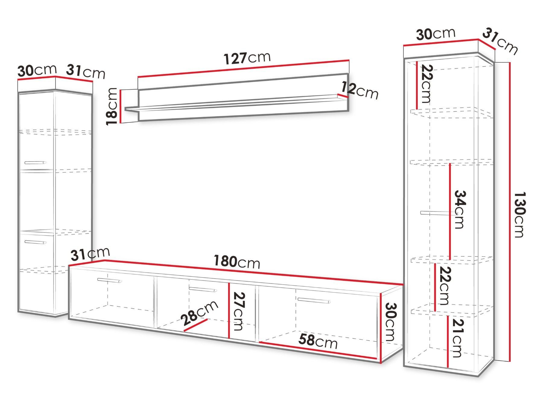 Wohnwand Bogota XL Wohnzimmer-Set Anbauwand Schrankwand Modern Wohnmöbel