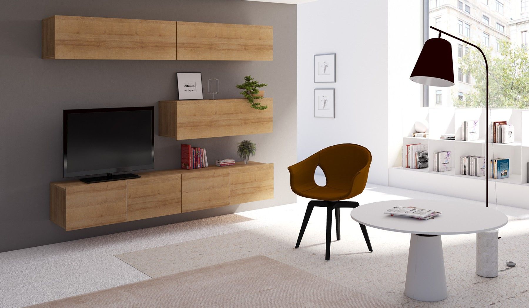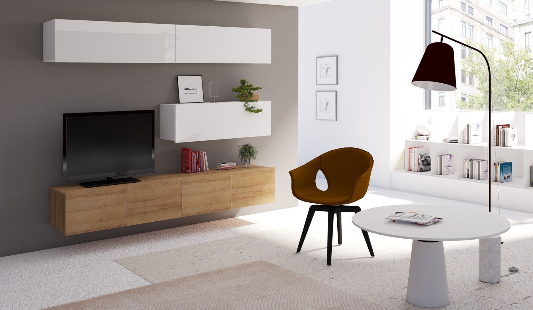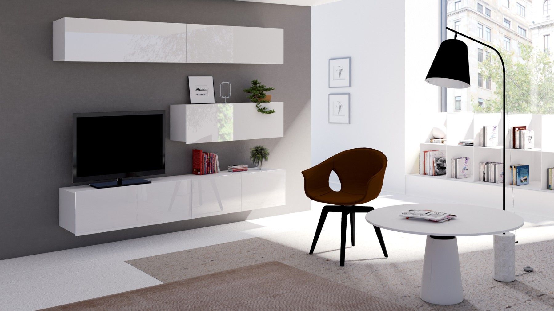 Wohnwand Calabrini-8 Wohnzimmer-Set Hängewohnwand Anbauwand Hochglanz Modern