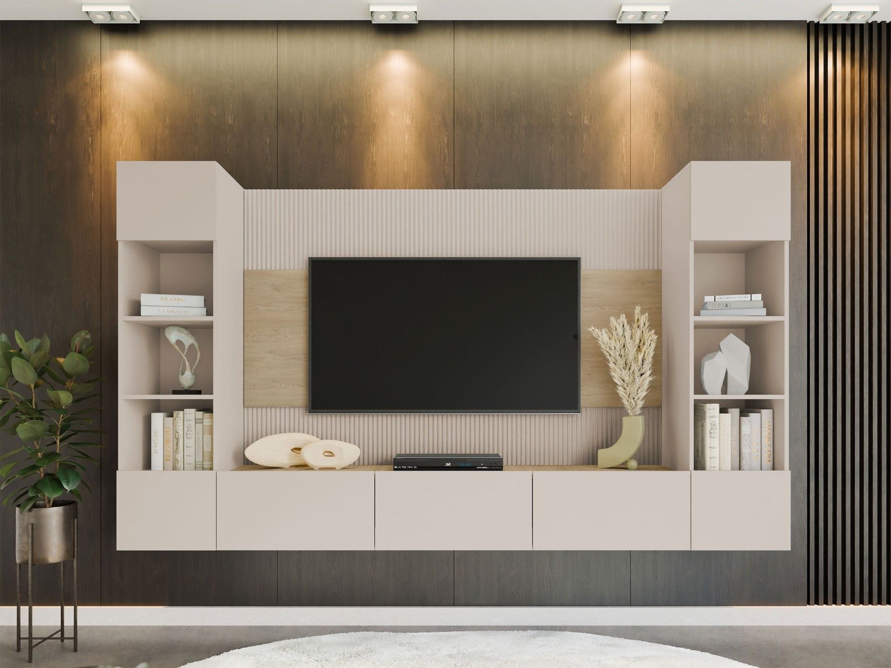 Wohnwand Deromi I Modern Wohnzimmer-Set Griffloses Öffnungssystem M24