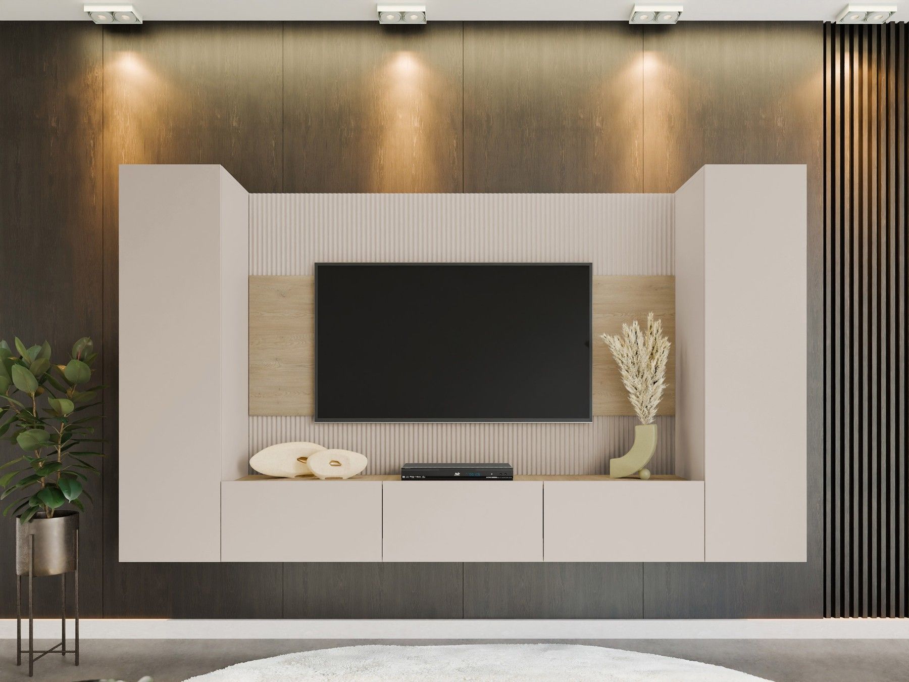Wohnwand Deromi V Modern Wohnzimmer-Set Griffloses Öffnungssystem M24