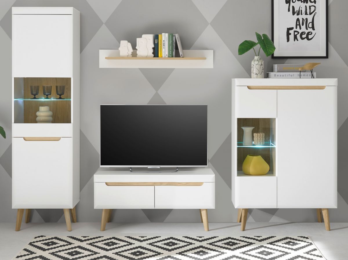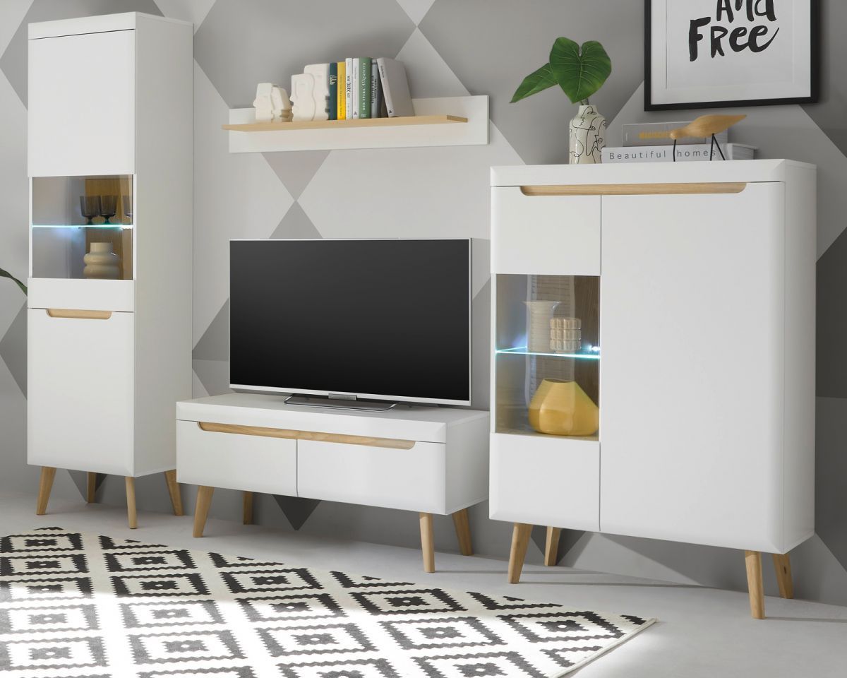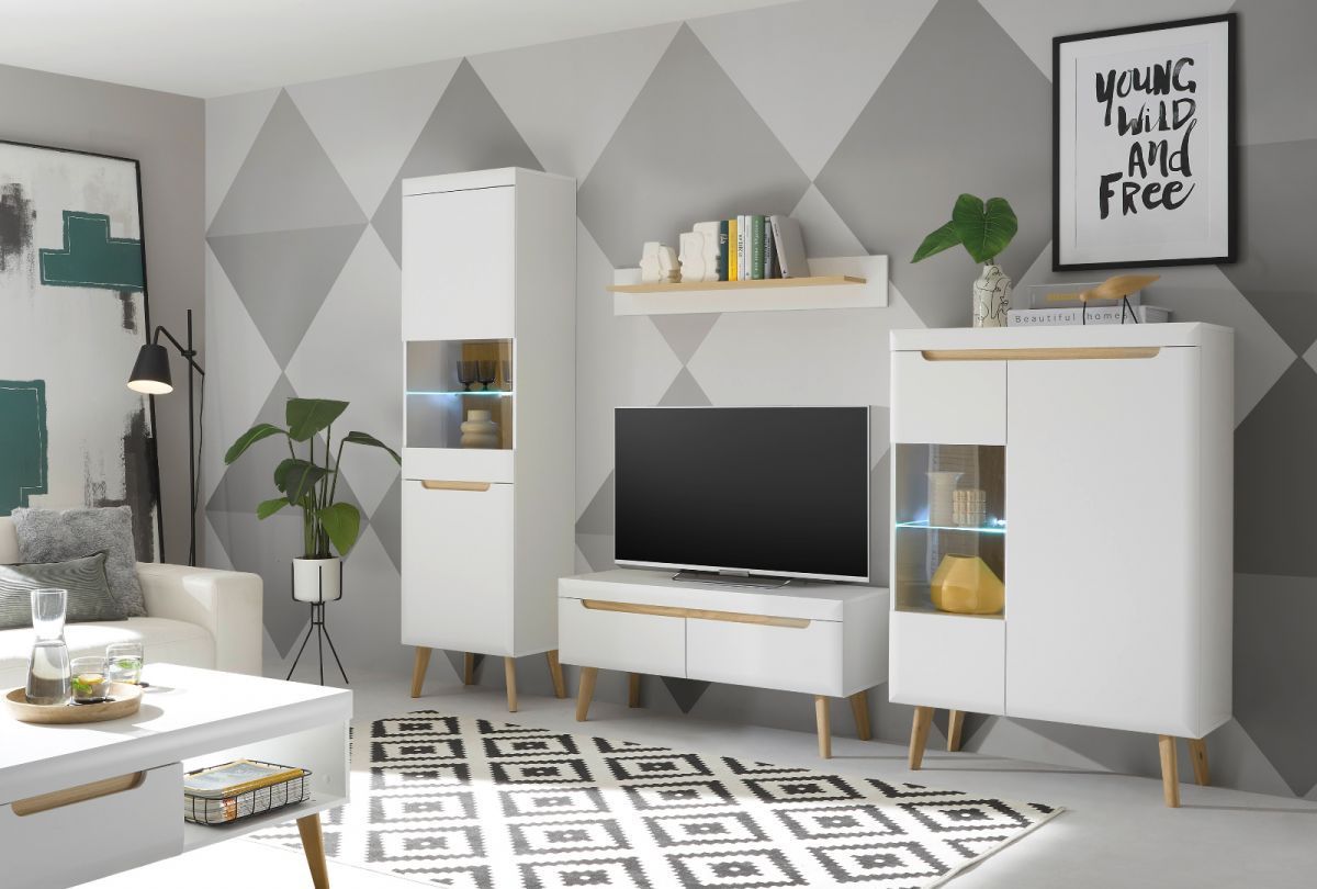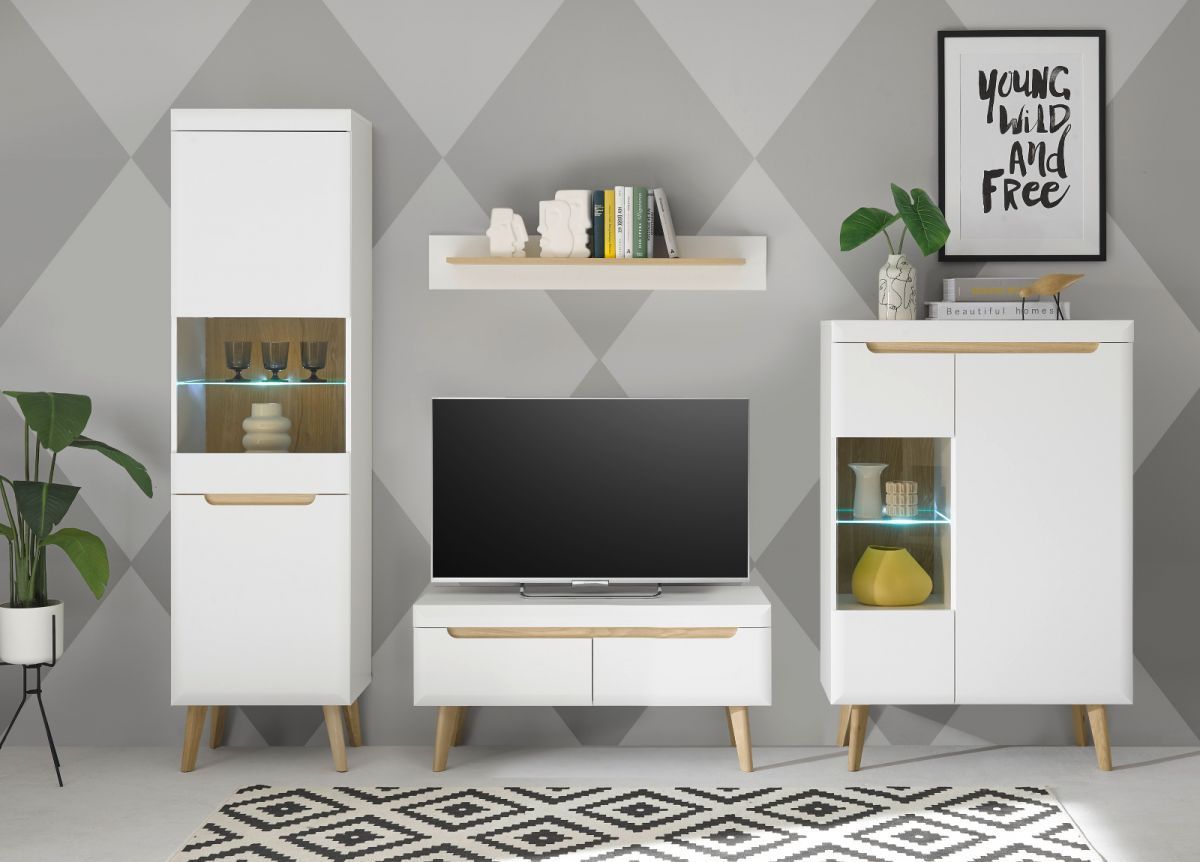 Wohnwand Isgard in weiß matt Eiche Schrankwand Wohnzimmer Anbauwand 4-teilig 290 cm