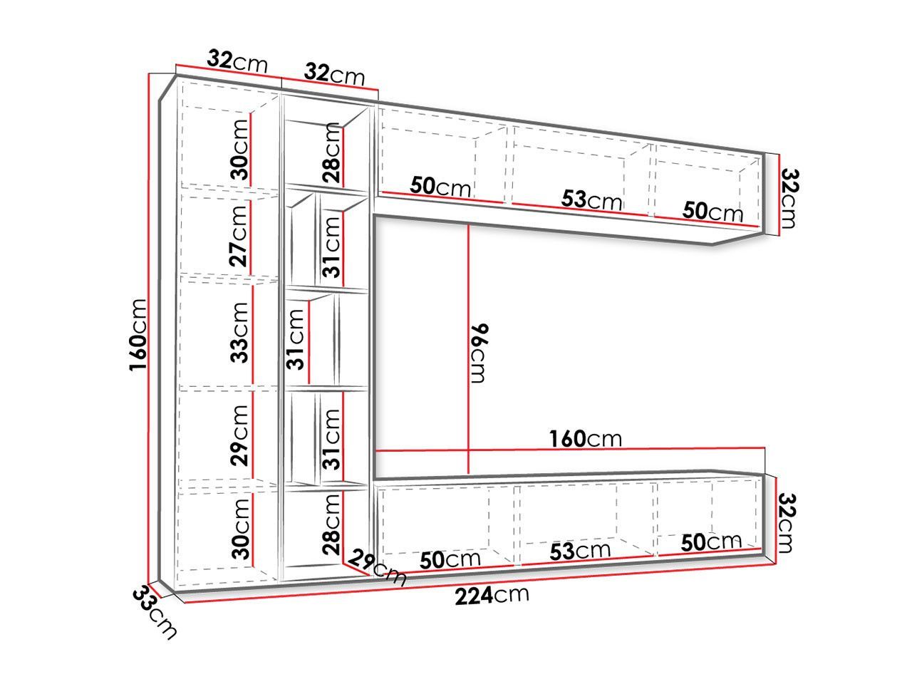 • Nowara 1C Wohnwand Wohnzimmer - Möbel Schrankwand mit Regale- Hängend Wohnwand Modern