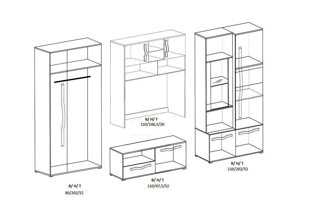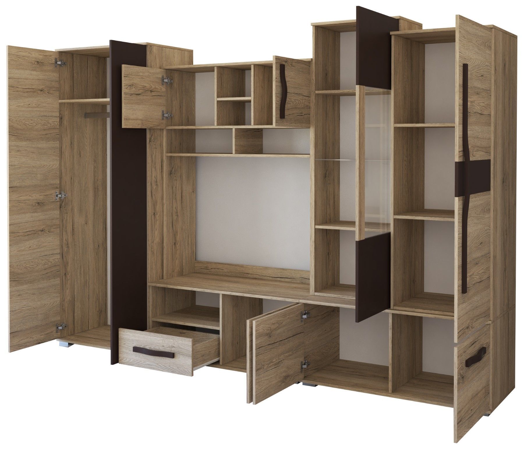 Wohnwand MASTER mit Kleiderschrank Anbauwand Wohnzimmer-Set TV Schrank LED !