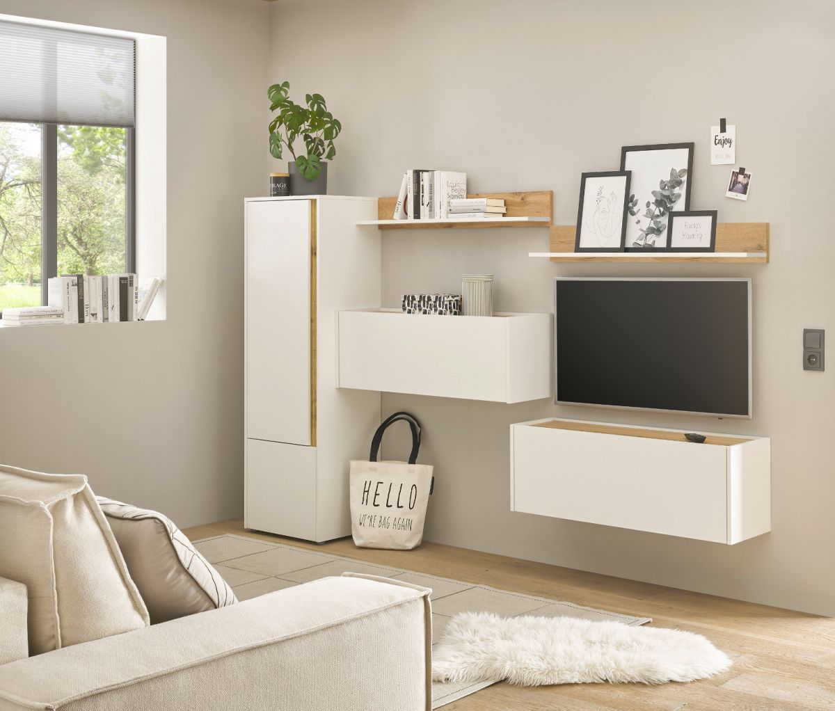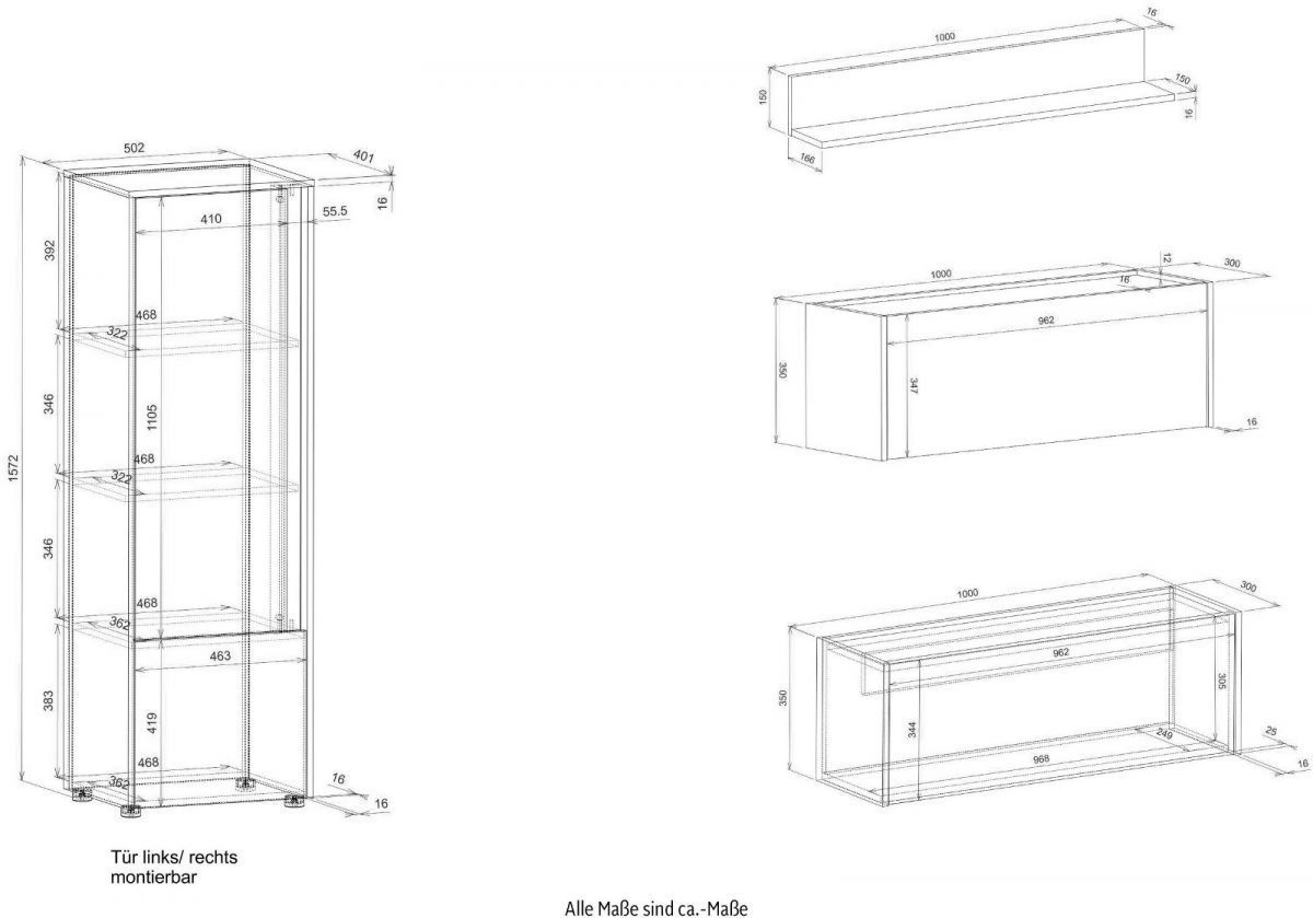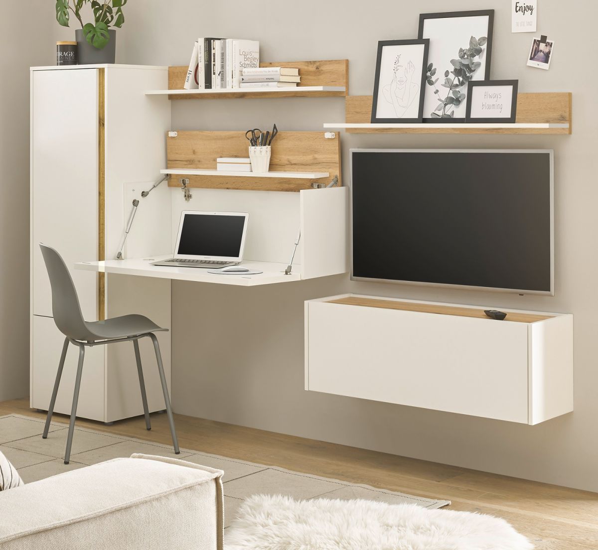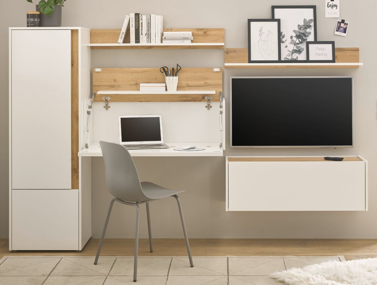 Wohnwand mit Sekretär in weiß matt Wotan Eiche Wohnzimmer Set Home Office Center