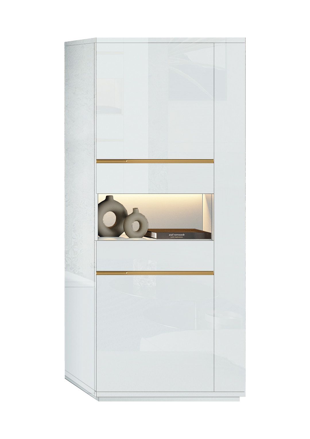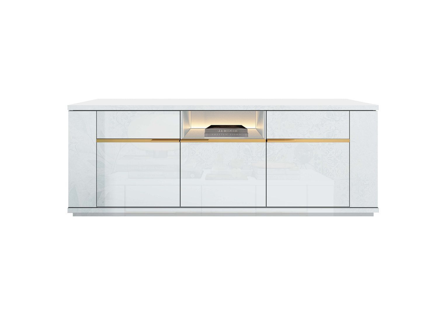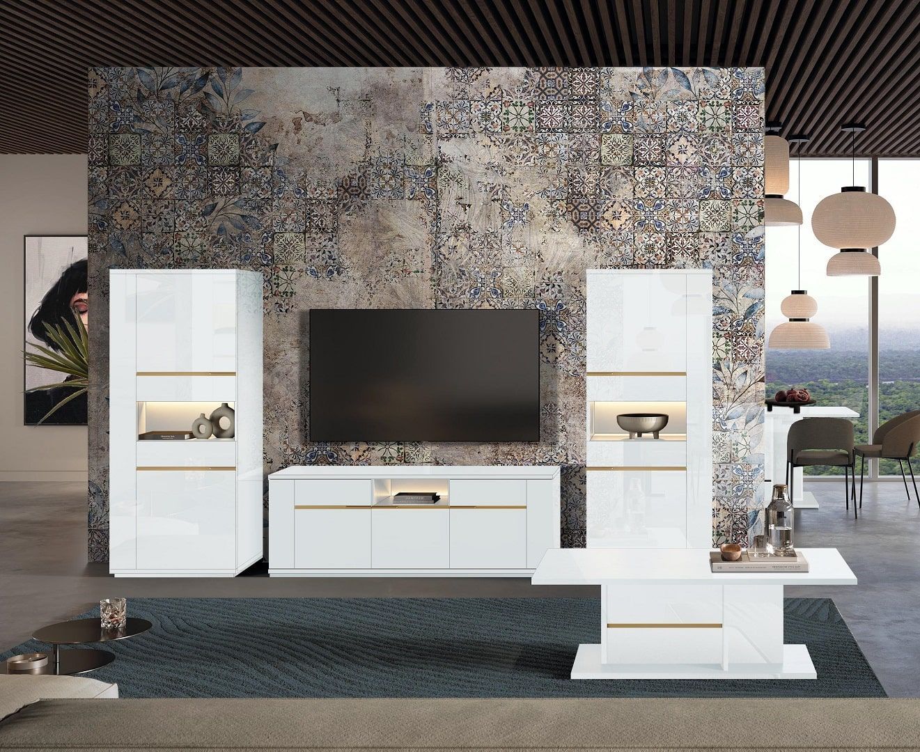 Wohnwand Pegaso 4-Teilig in Weiß/Gold Hochglanz